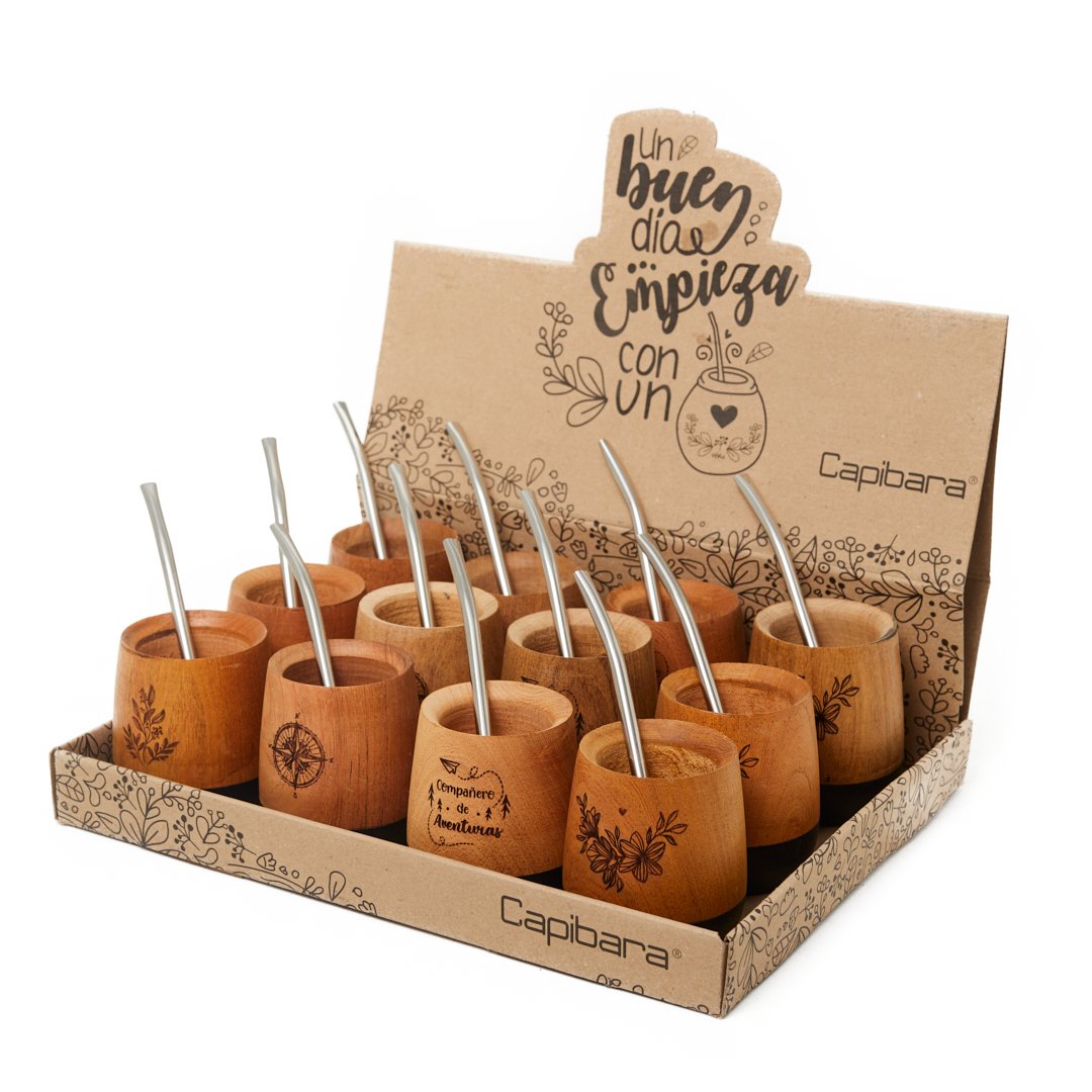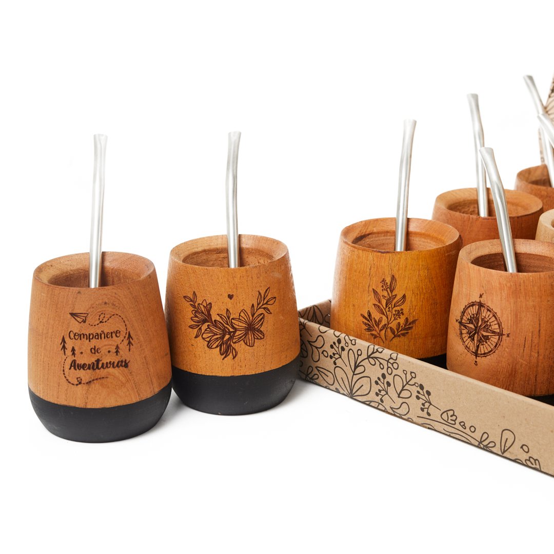CAJA MATE MADERA CON GRABADO Y BASE PINTADA X12