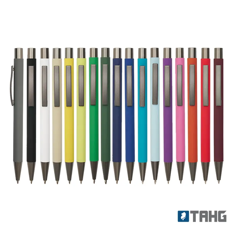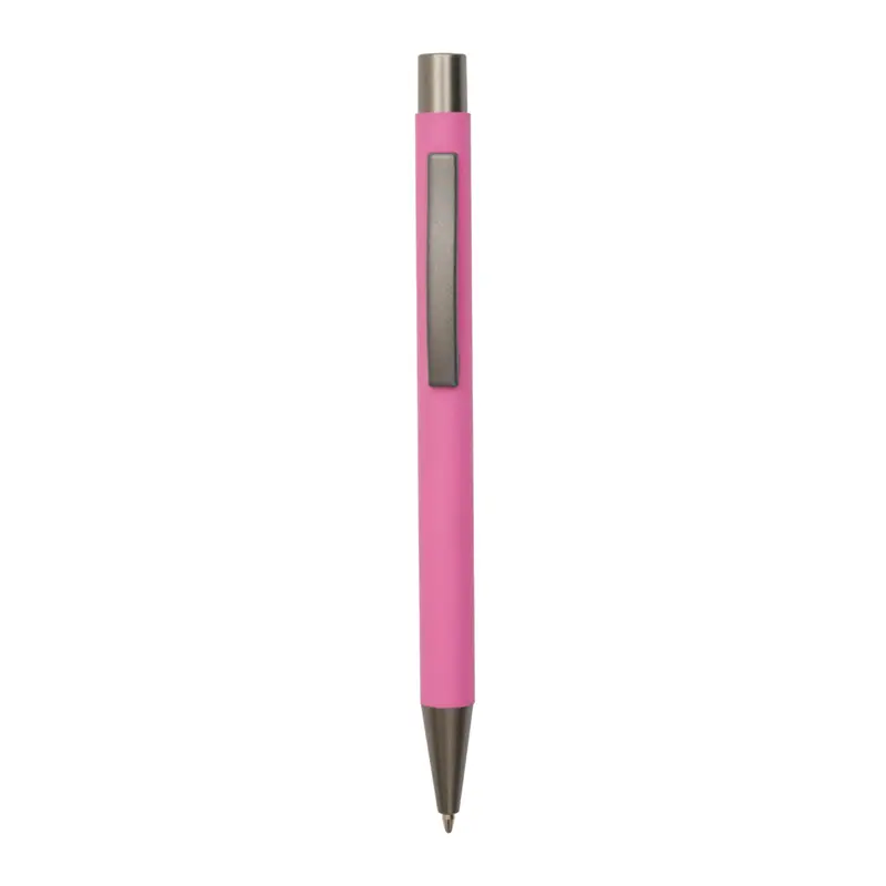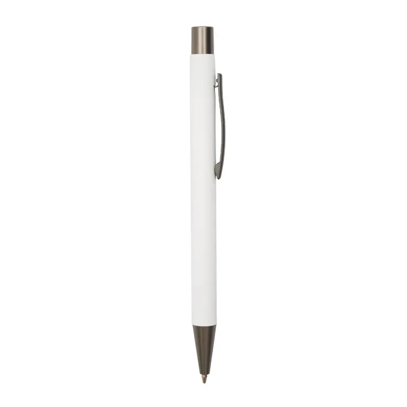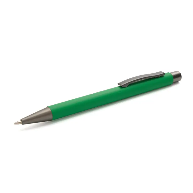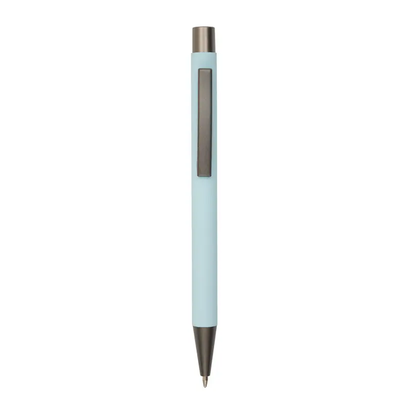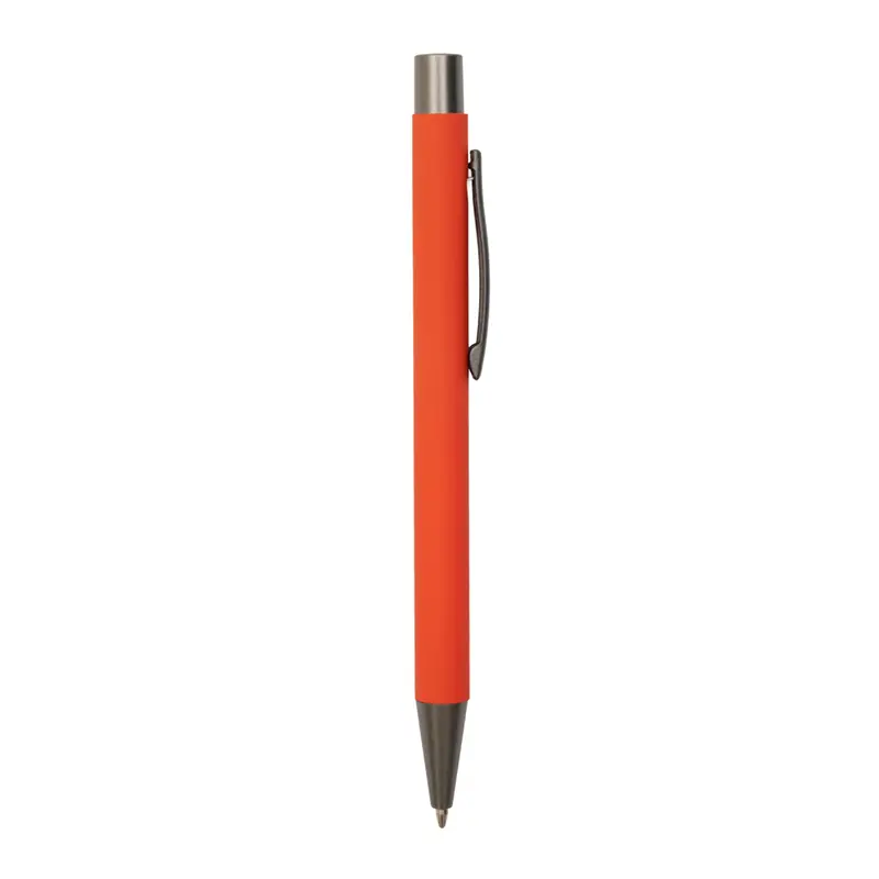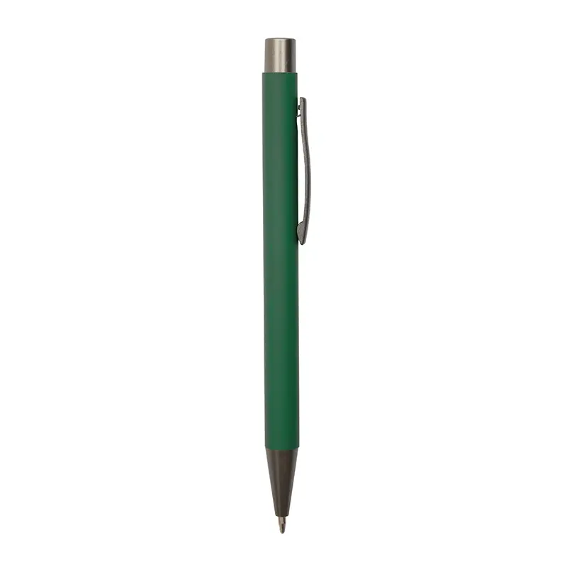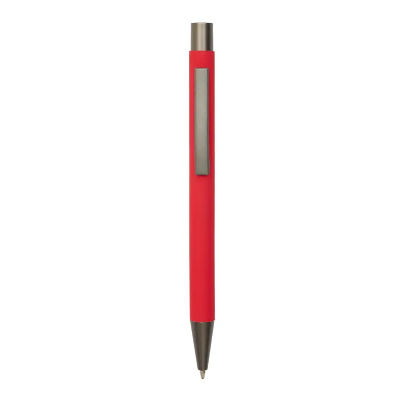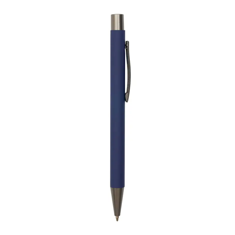Bolígrafo roller de cuerpo metálico con recubrimiento de goma, fabricado en aluminio de alta calidad. Cuenta con clip, botón y punta en color gris oscuro, lo que le otorga un diseño moderno y elegante. Es ideal para oficinas, universidades, ferias o como regalo institucional.