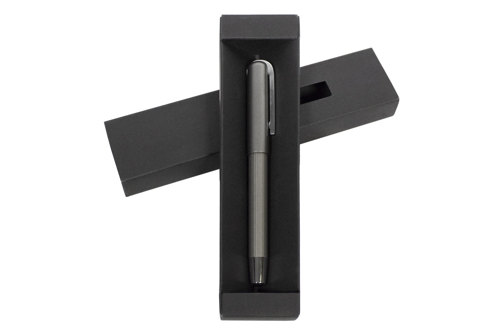 Metálico. Bolígrafo touch con apertura giratoria. Destape acero en la parte superior. Cuerpo color negro mate. Puntera, anillo y clip color negro brilloso. Tinta azul. Presentación en caja de regalo.