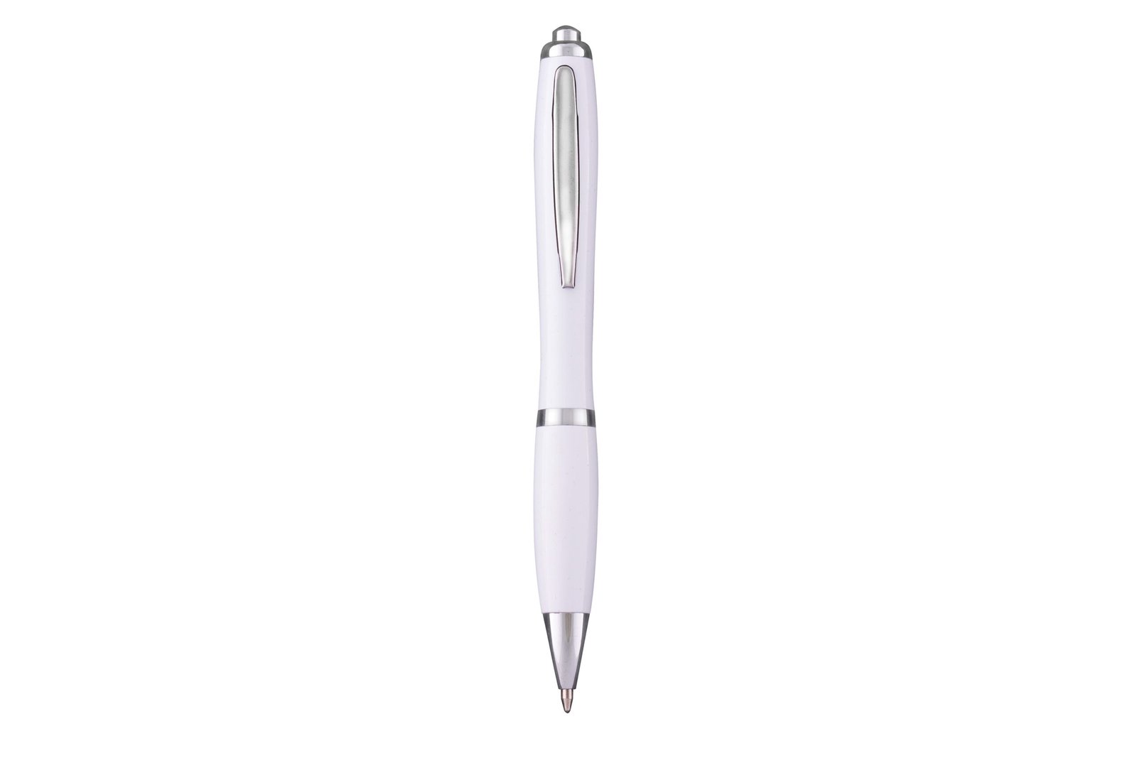 Plástico. Cuerpo de color. Pulsador y puntera plásticos. Clip metálico. Tinta negra.