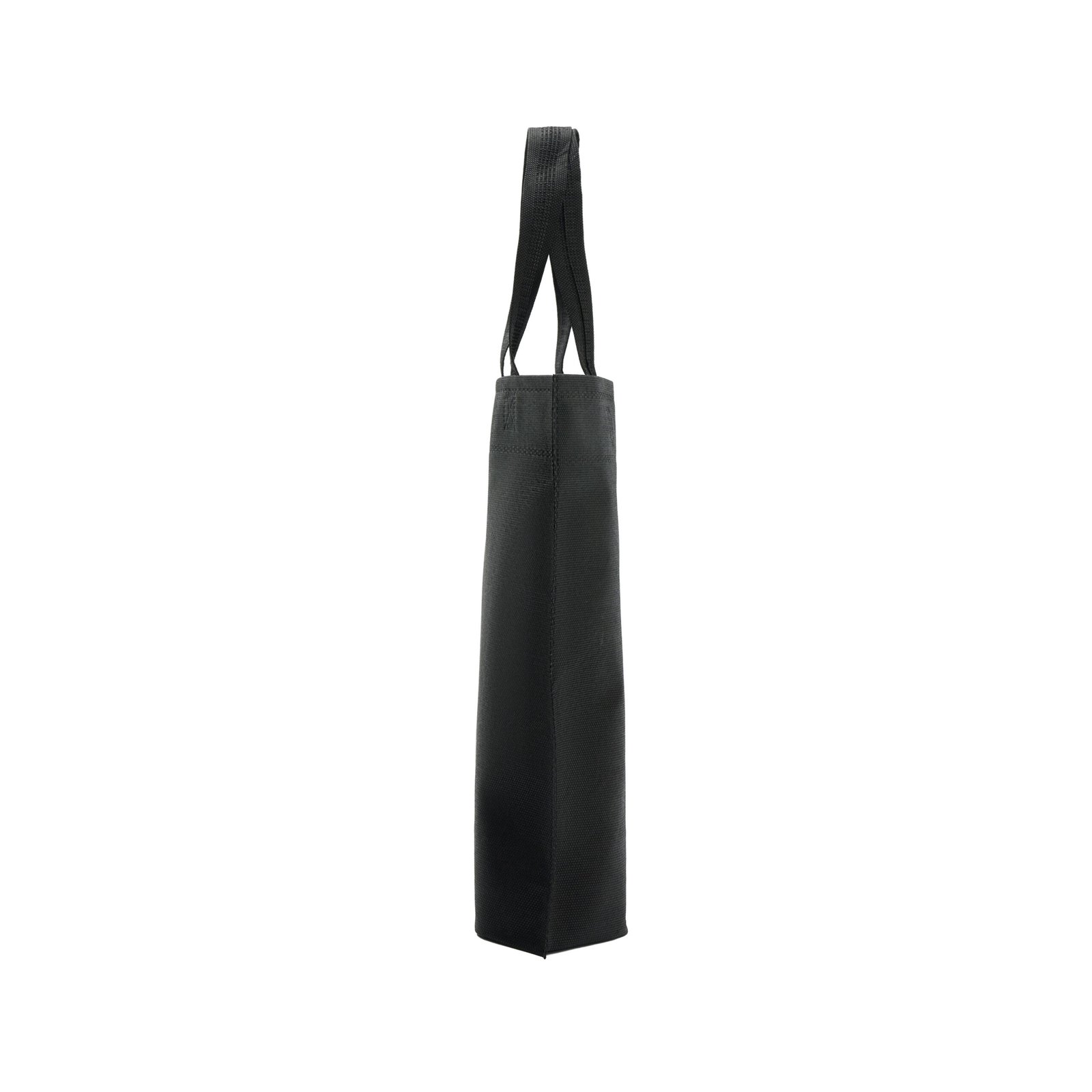 Bolsa reutilizable plana sin fuelle lateral, con base oval. Fabricada en friselina de 80g/m2. Cuenta con manijas tipo correa y es ideal para entregar productos pequeños o medianos en eventos, ferias o locales.