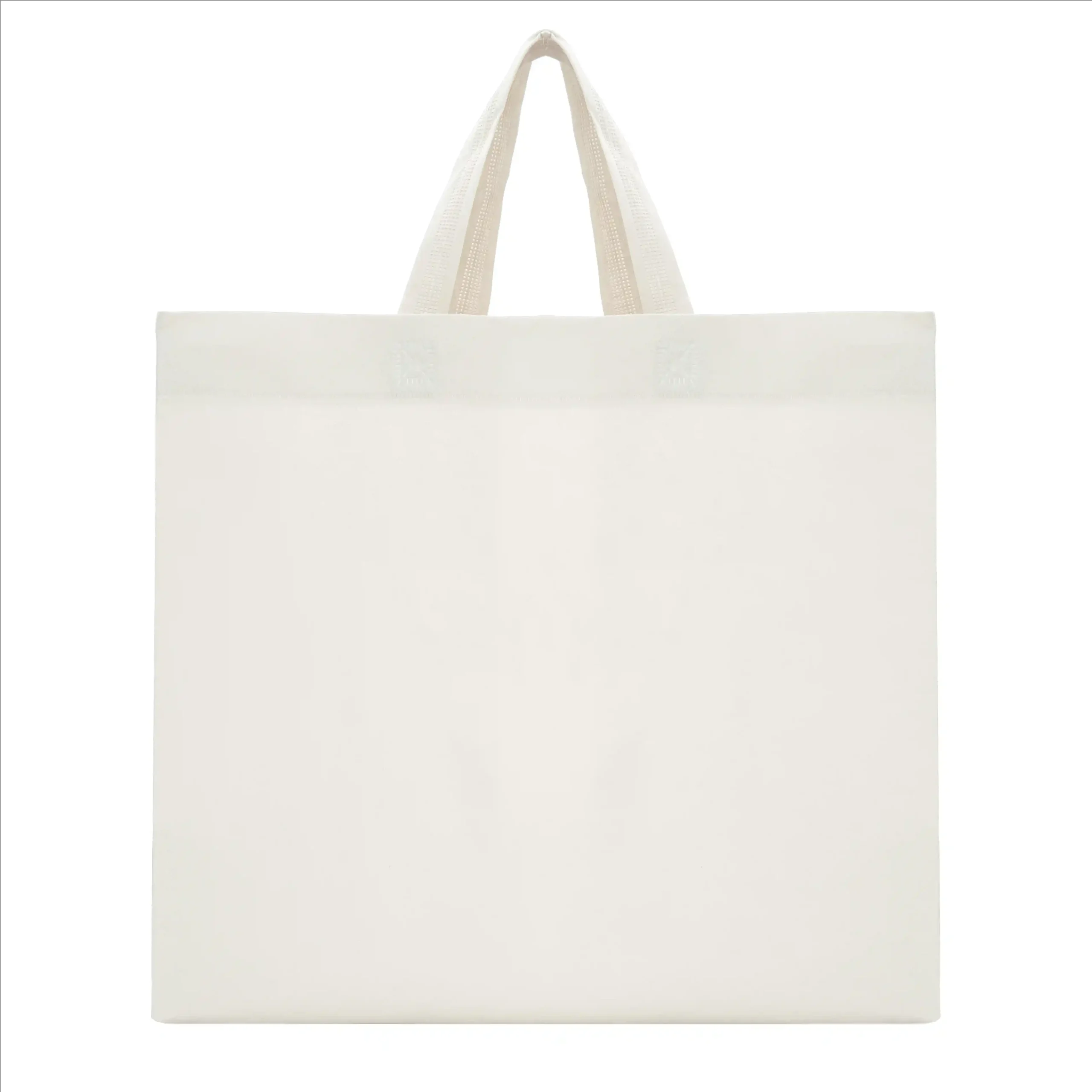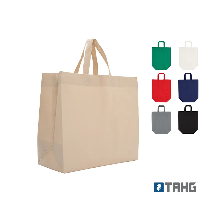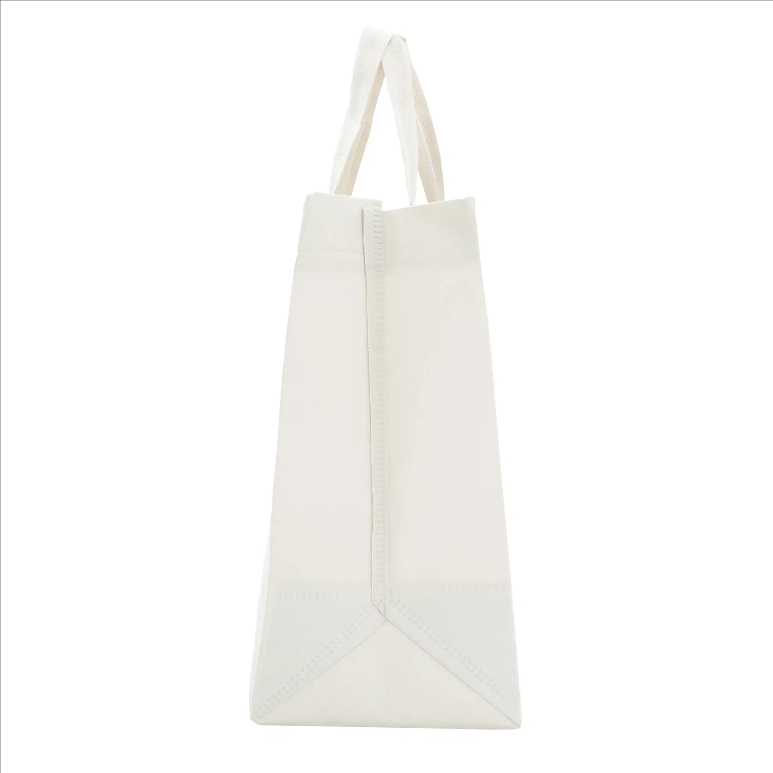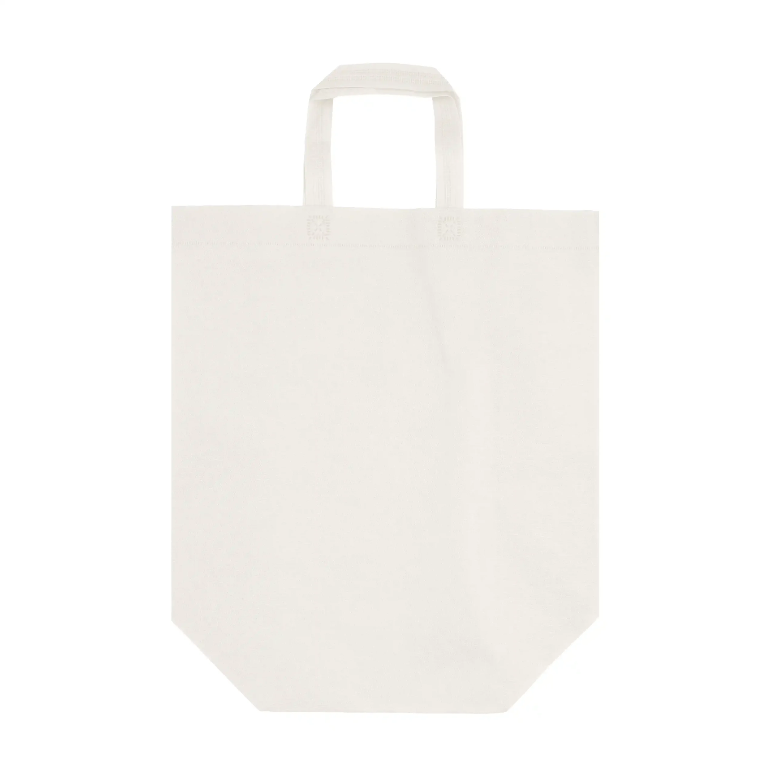 Bolsa reutilizable con fuelle lateral y base. Fabricada en friselina de 100 g/m2. Cuenta con manija tipo correa. Ideal para bolsos, mochilas o kits promocionales completos. Su tamaño y estructura permiten transportar productos más grandes y pesados.
