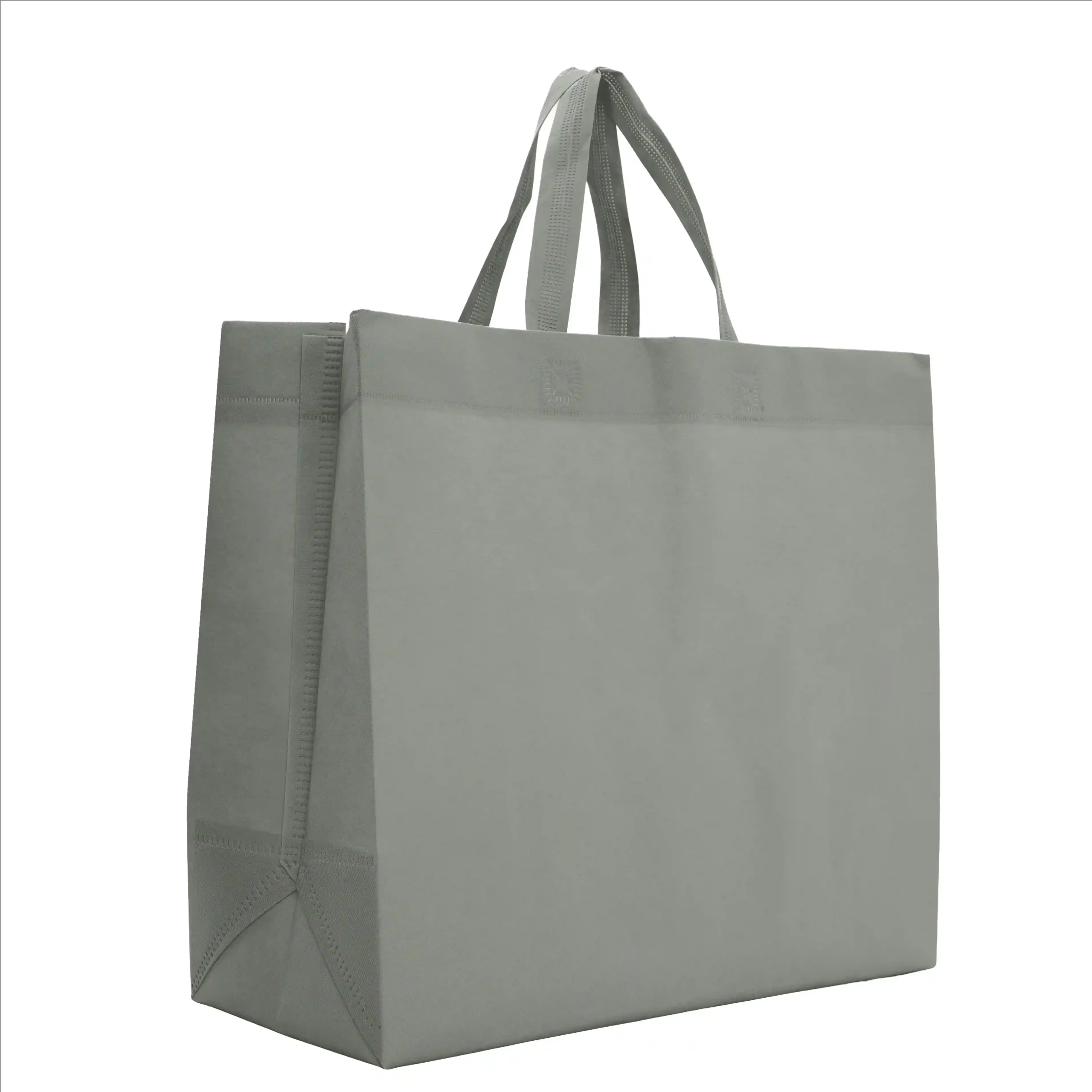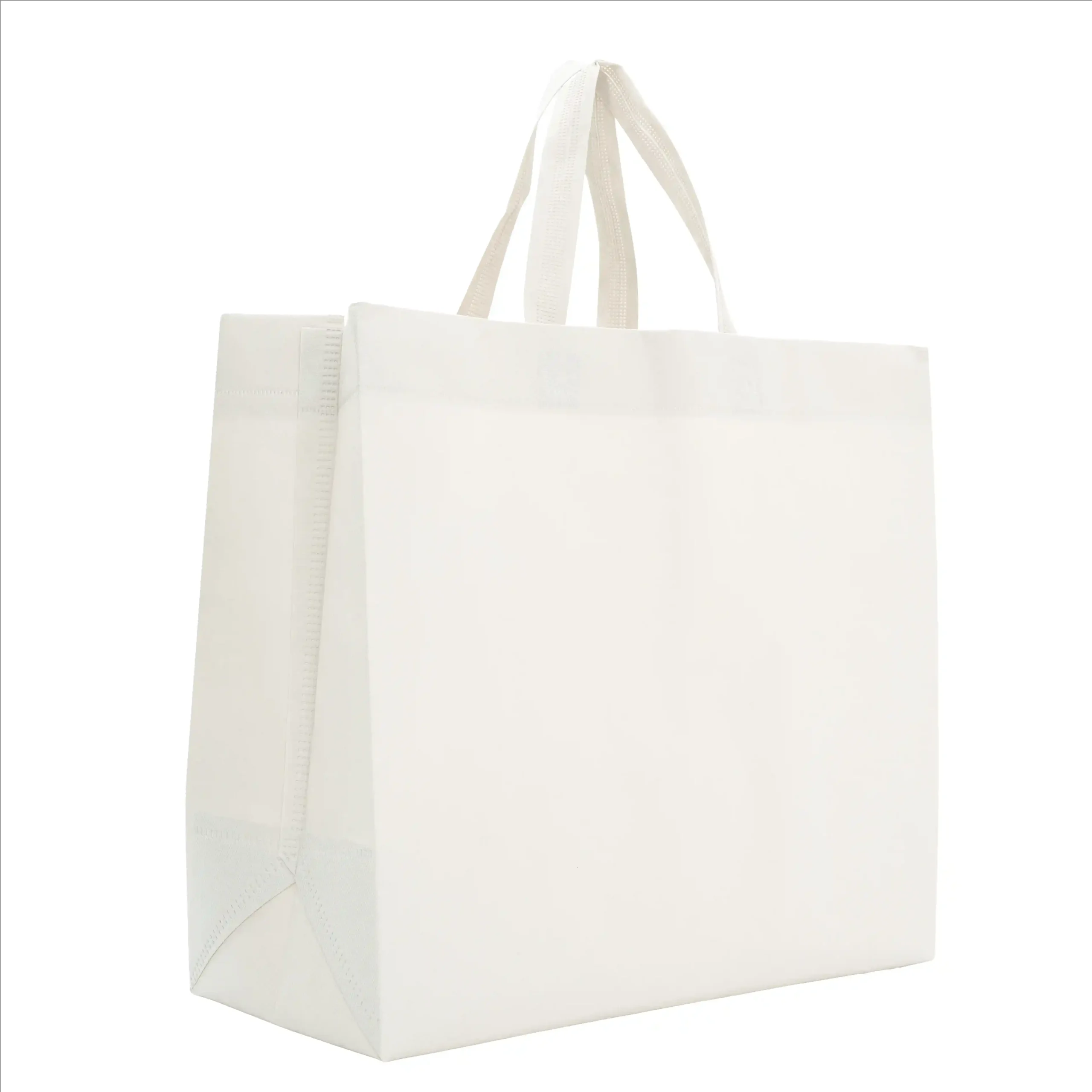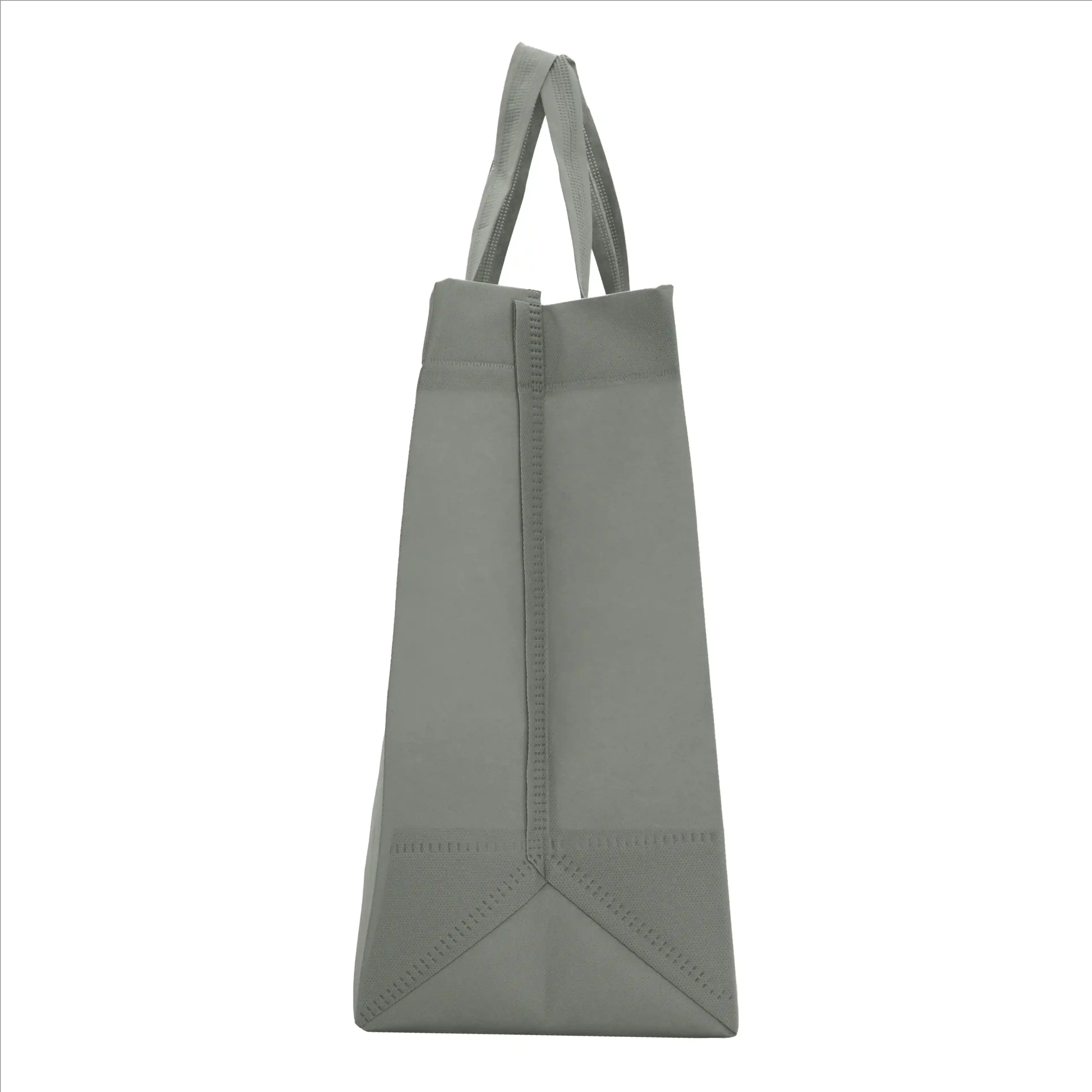 Bolsa reutilizable con fuelle lateral y base. Fabricada en friselina de 100 g/m2. Cuenta con manija tipo correa. Ideal para bolsos, mochilas o kits promocionales completos. Su tamaño y estructura permiten transportar productos más grandes y pesados.