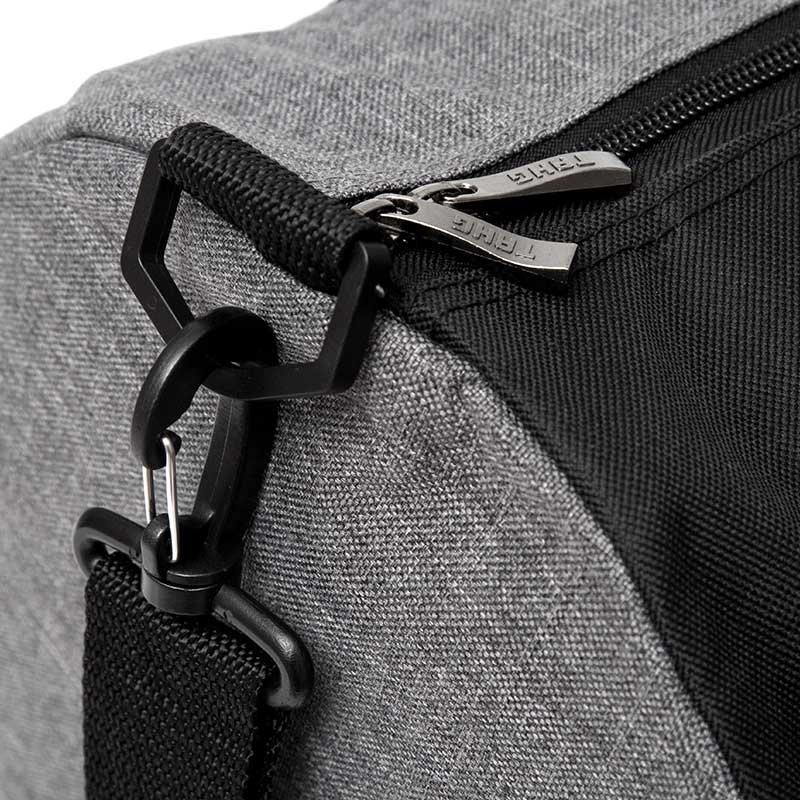 Bolso de Policanvas con interior de PVC reforzado. Zipper de metal. Compartimiento principal y bolsillo frontal con cierre de velcro. Medidas: diámetro 24cm x 49cm. Capacidad: 19 Lts. Tahg.