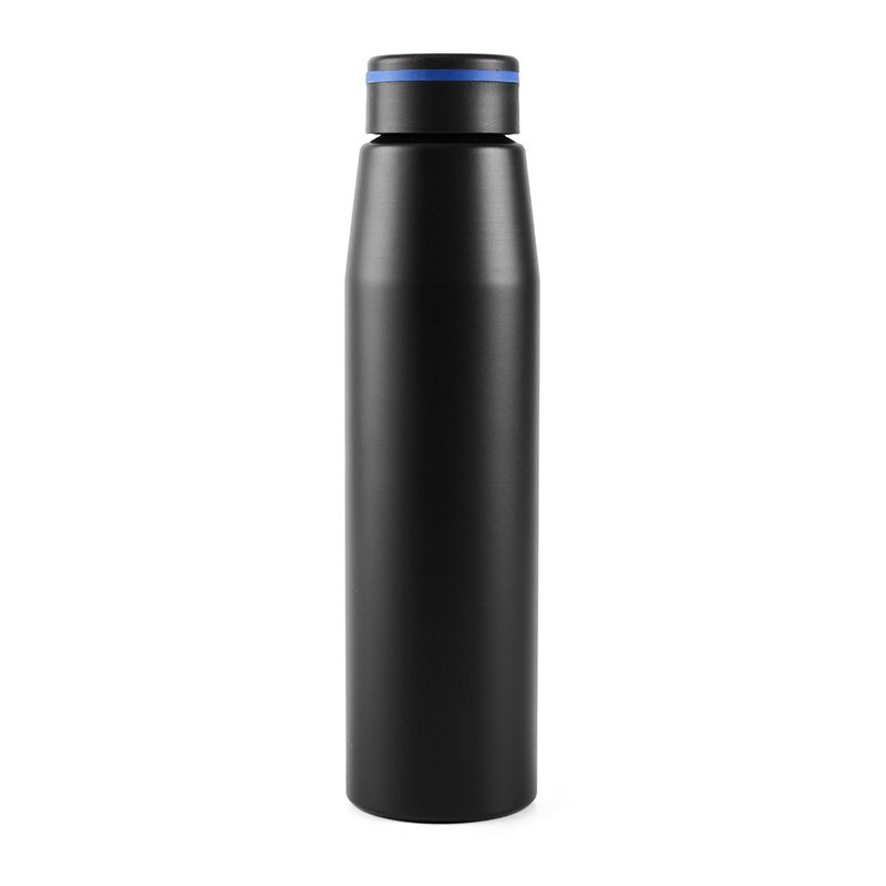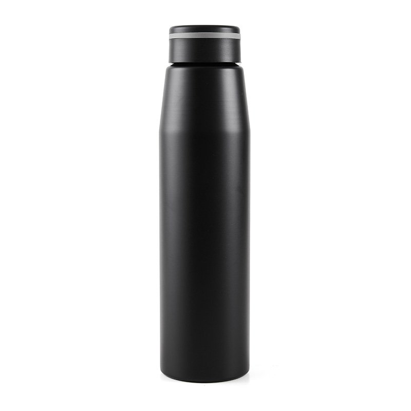 Botella de 700 ml fabricada en aluminio con tapa negra a rosca con banda de silicona de color gris, roja o azul. Ideal para tus actividades deportivas y al aire libre.