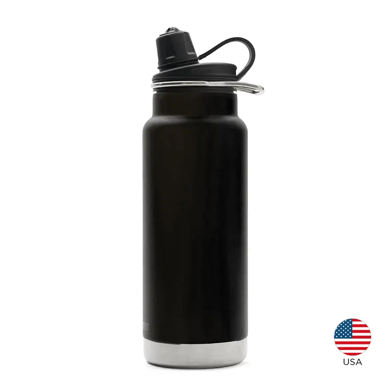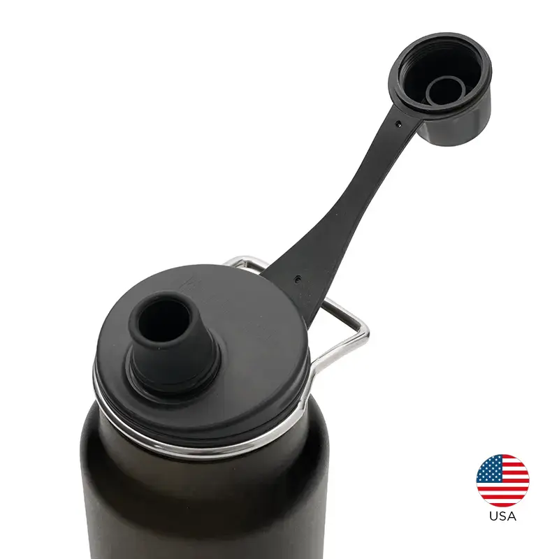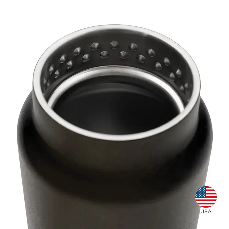 Cuenta con tapa a rosca de boca ancha con pico antigoteo Chug Cap para una hidratación rápida y gancho de agarre.