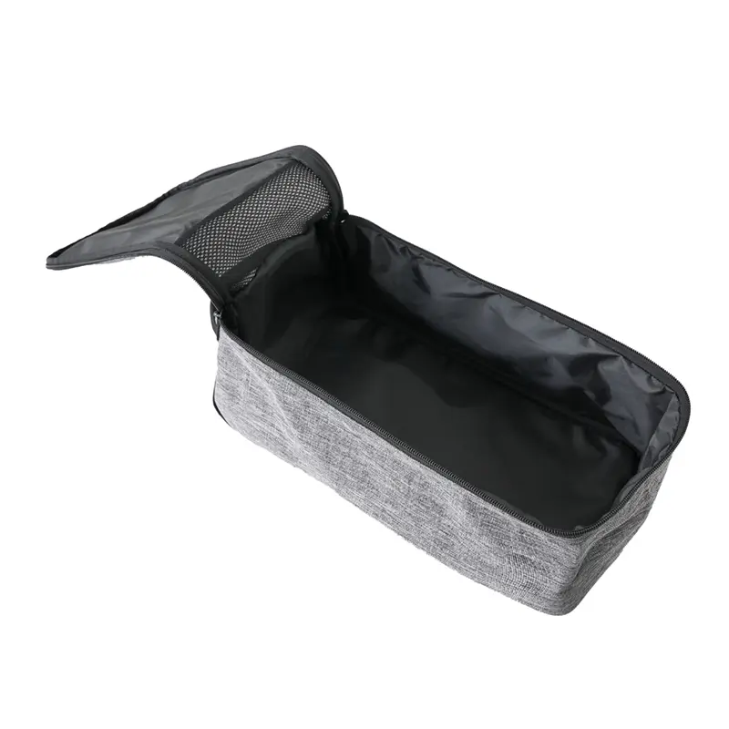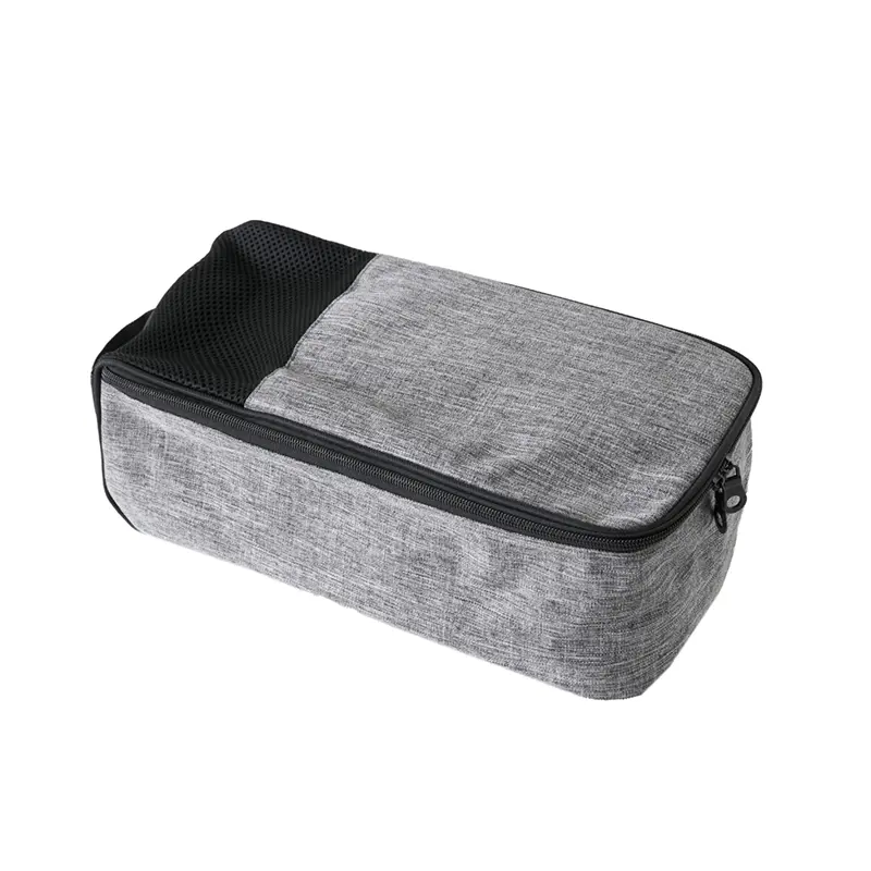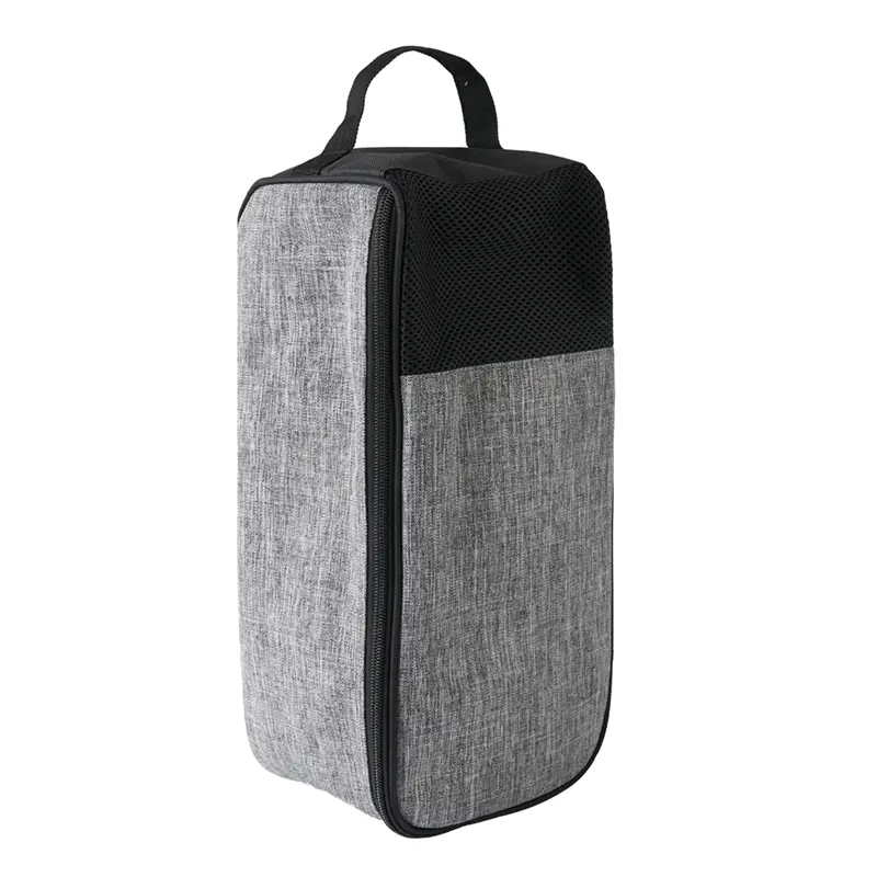 Bolsa porta calzado con manija y panel ventilado. Está confeccionada en poliéster tipo lino 600D y malla. Cuenta con cierre superior, manija de transporte y panel frontal con red. Es ideal para transportar y guardar calzado en viajes o actividades deportivas.