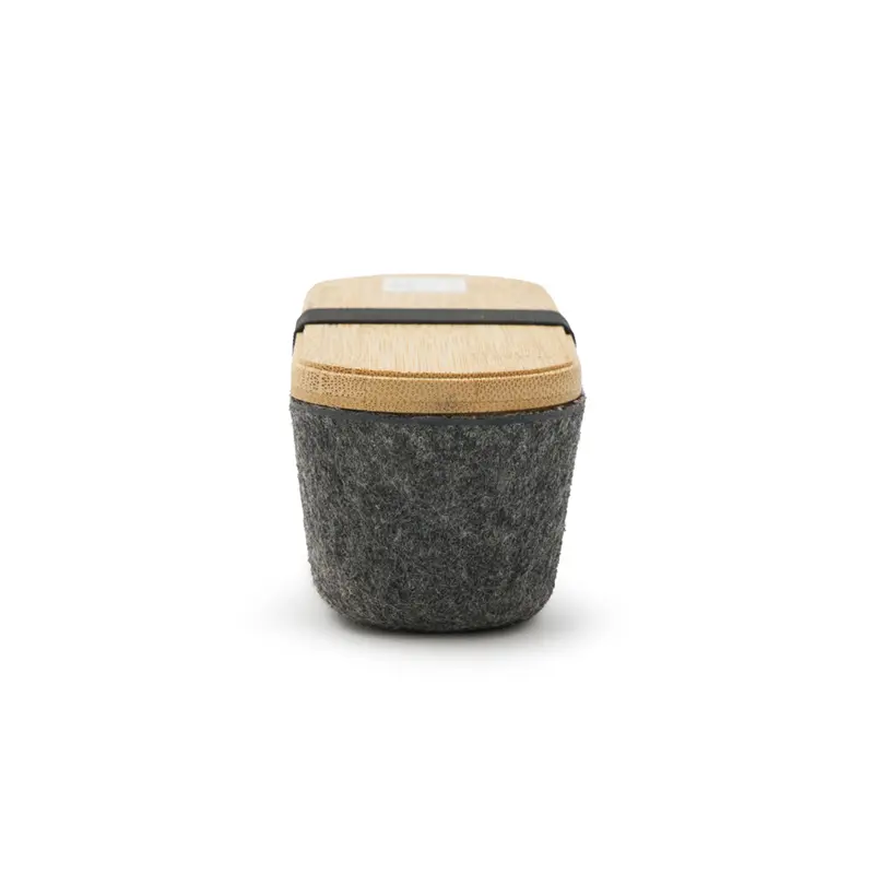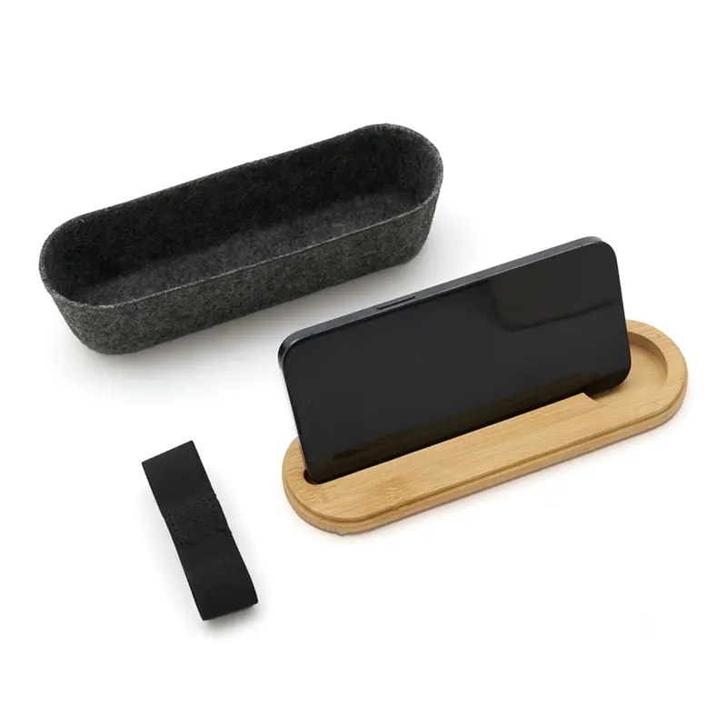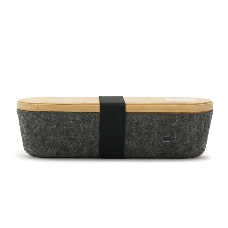 Estuche ideal para ser utilizado como cartuchera o portaobjetos. Está confeccionado en fieltro RPET reciclado y tapa de bambú natural, lo que la convierte en una opción sostenible, resistente y con un diseño moderno.