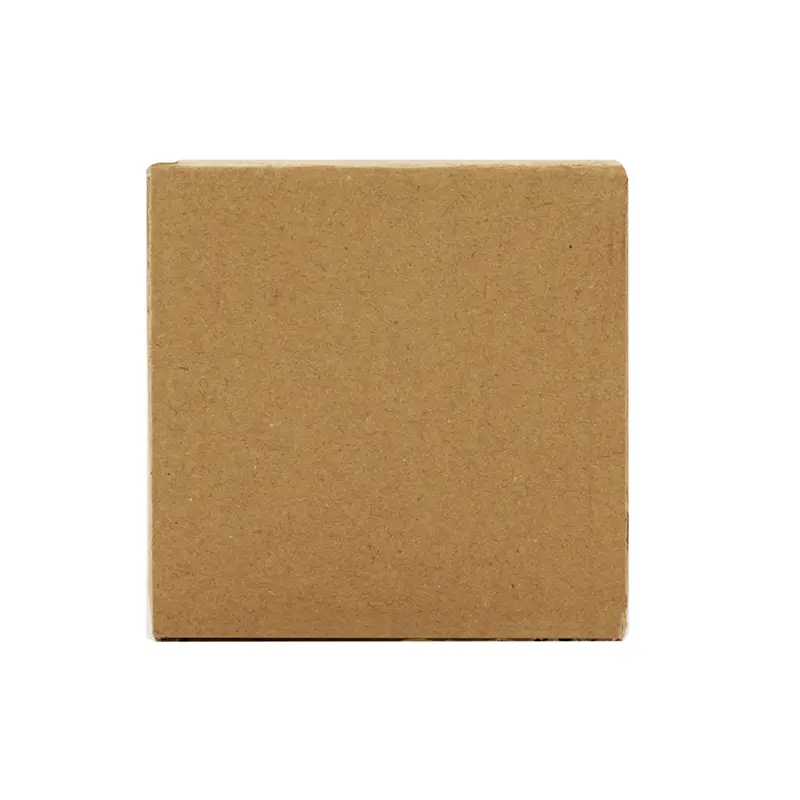 Caja confeccionada en cartón Kraft, elaborado con tres capas: una exterior de 250g, una capa corrugada de 80g, y una interior de 85g.