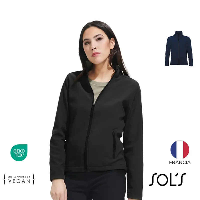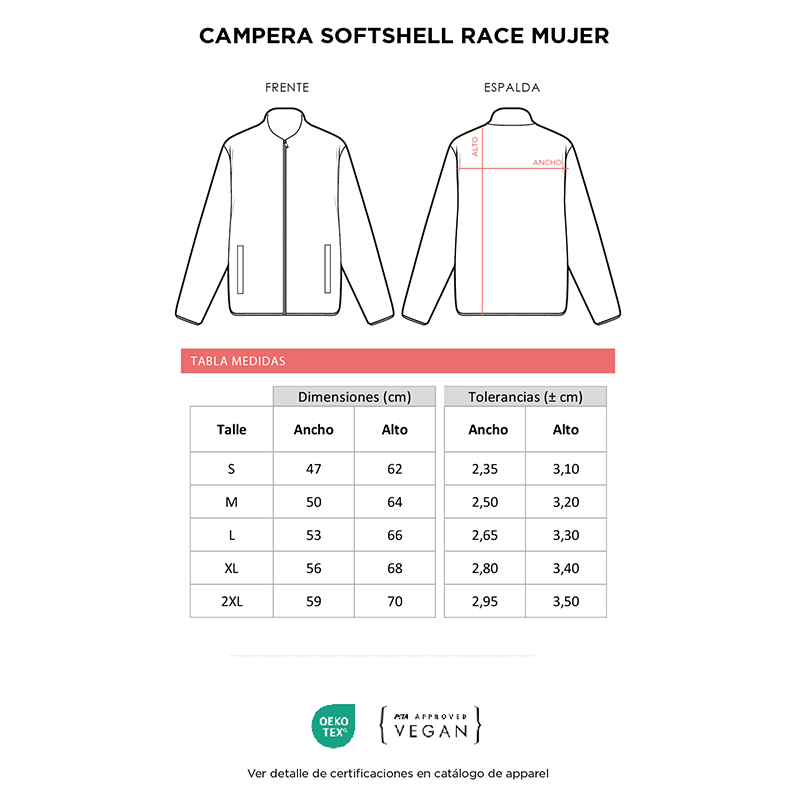 Campera de softshell 280g 96% poliéster 4% elastáno con tela exterior impermeable e interior de polar. Cuenta con 2 bolsillos laterales con cremallera. CERTIFICACIÓN: PETA-Approved Vegan RECOMENDACIONES DE USO: Lavar a máquina a 40°. No lavar en seco. No blanquear. No planchar. No secar en máquina. Consultar términos y condiciones del servicio. Sol´s.