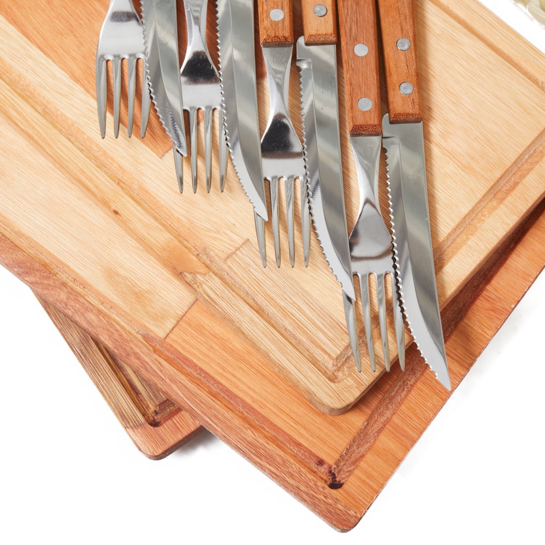 4 Juegos de cubiertos acero inoxidable con mango de madera Tramontina Dynamic.