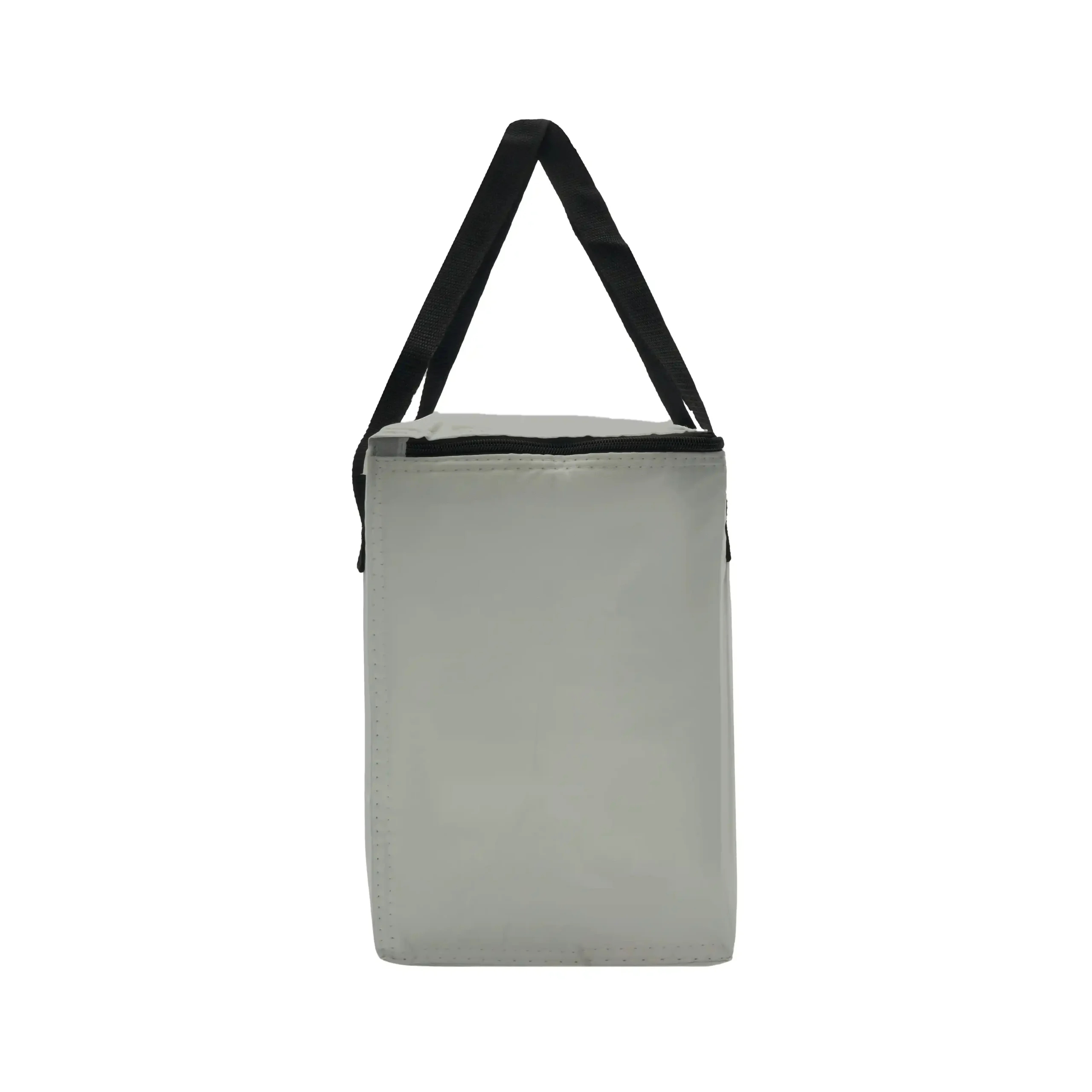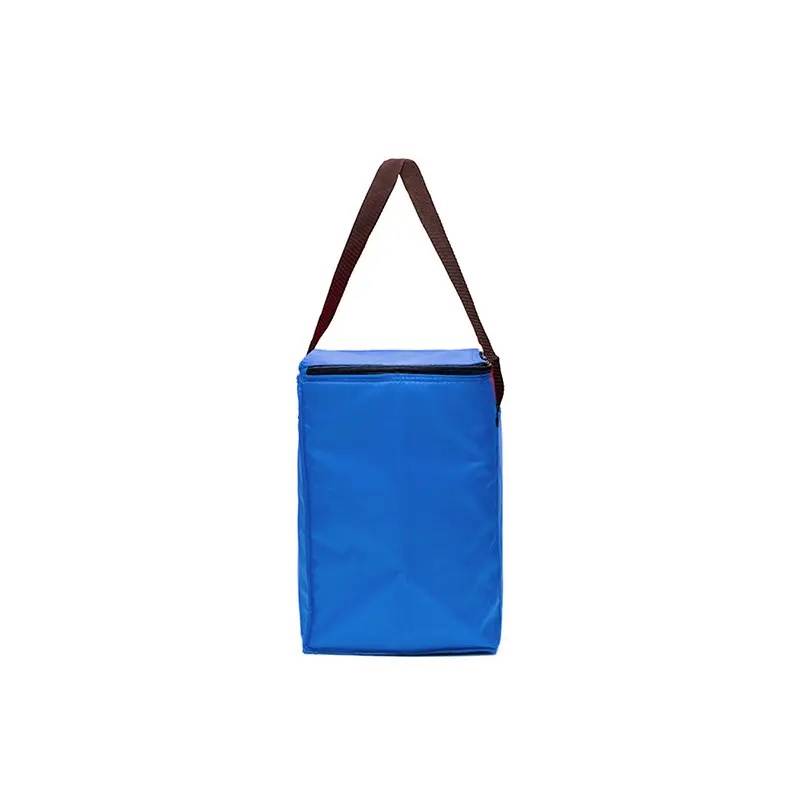 Realizado en Polyester. Interior térmico en aluminium foil. Doble cierre. Bolsillo frontal.