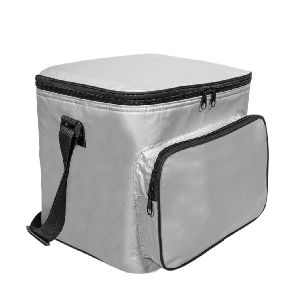 Realizado en Polyester. Interior térmico en aluminium foil. Doble cierre. Bolsillo frontal.