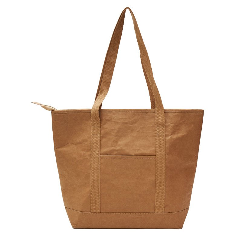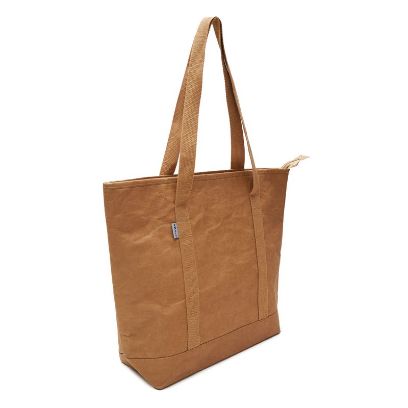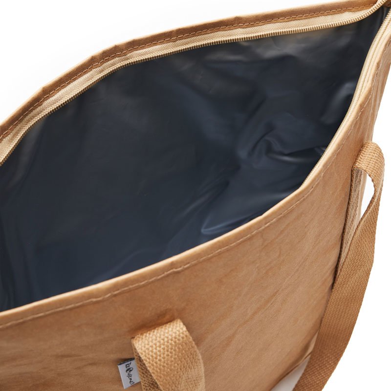Cooler con formato tipo cartera. Realizado en su exterior en papel kraft, con interior térmico de PEVA. Medidas: 30,5 x 12 x 34 cm. Capacidad: 12L. ReUseMe.