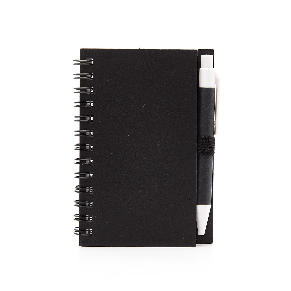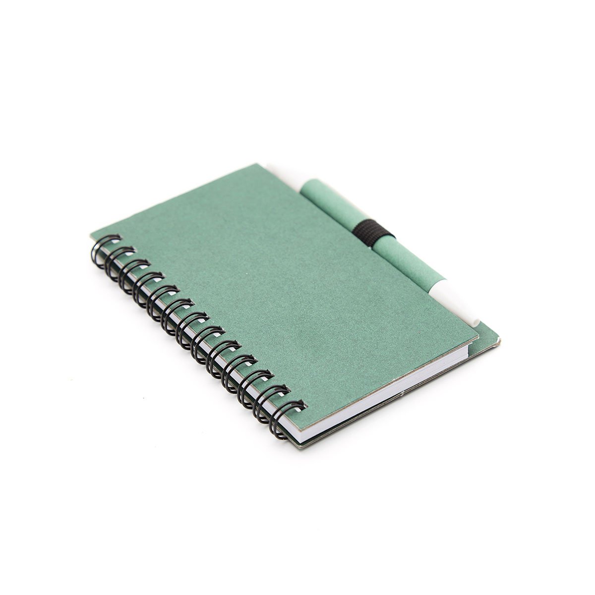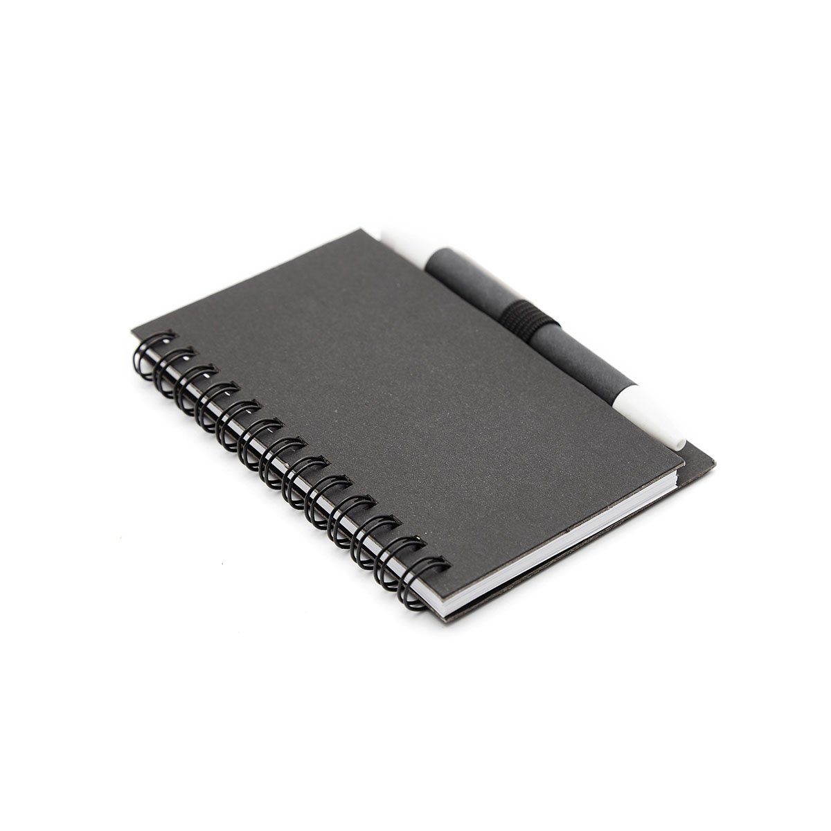 Cuaderno anillado colors tamaño A6 con 50 hojas lisas de 80 grm. Realizado con tapa dura elaborada en cartón reciclado. Incluye bolígrafo con pulsador. Medidas: 8 x 12 cm. ReUseMe.