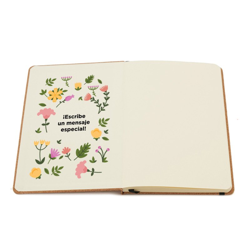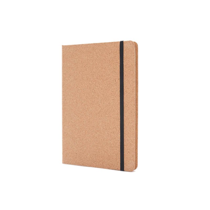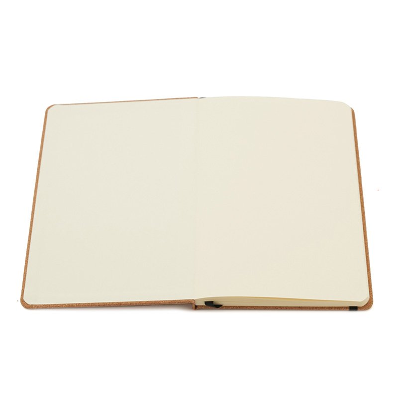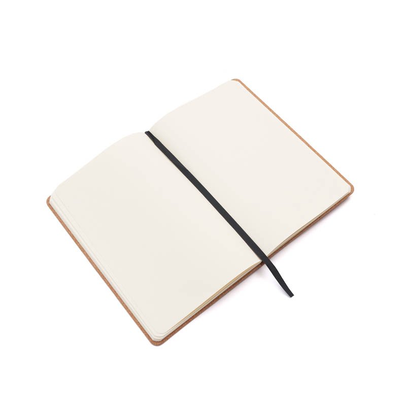 Cuaderno A5 de 80 hojas lisas de 70gr con tapa dura de papel kraft. Cuenta con cierre elástico y marcador de páginas color negro. Encuadernación cosida.