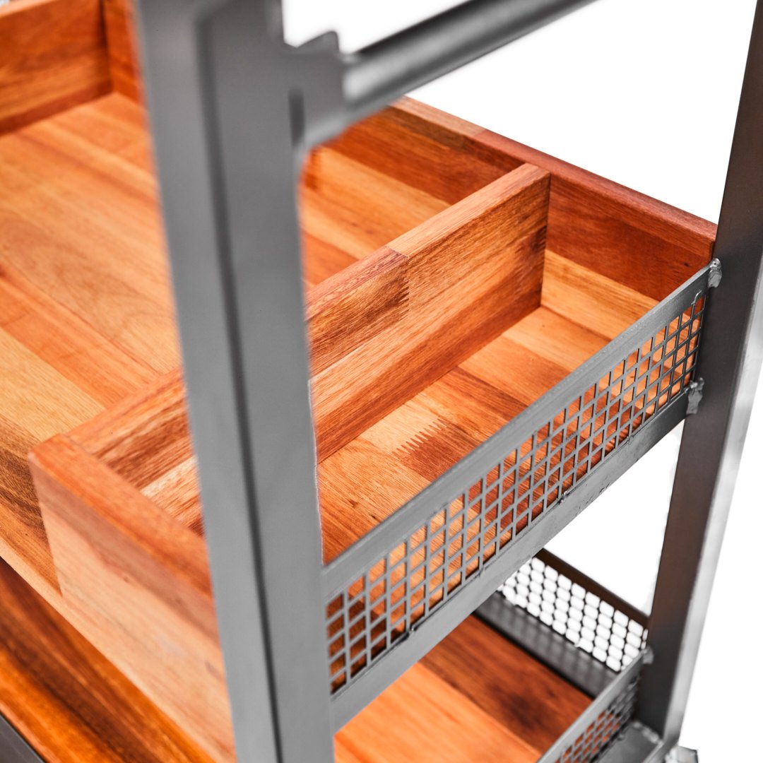 Estantes de madera 18mm (1 pulgada) Leuka compensada con estructura metálica.