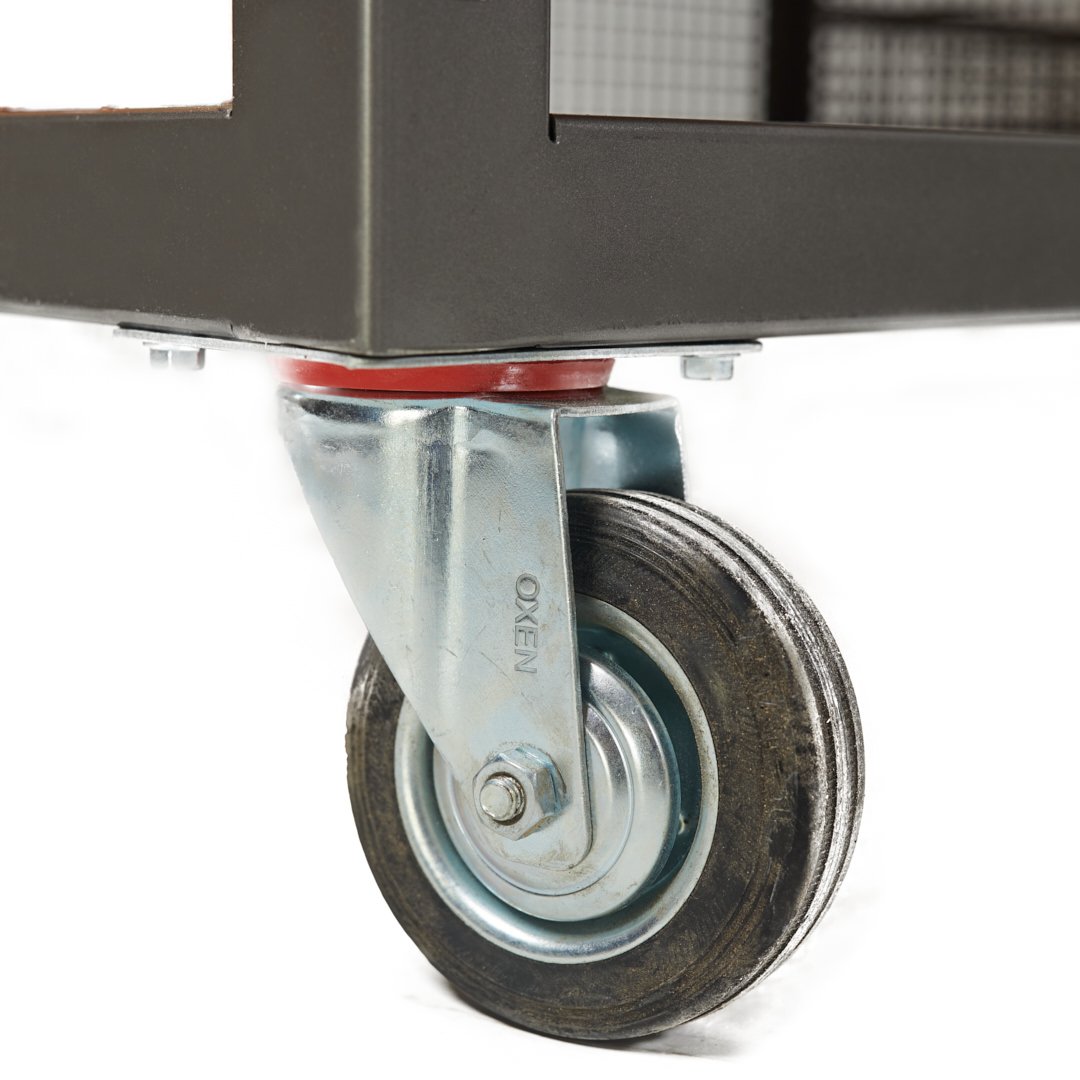 4 ruedas reforzadas para su desplazamiento, 2 de ellas con freno.