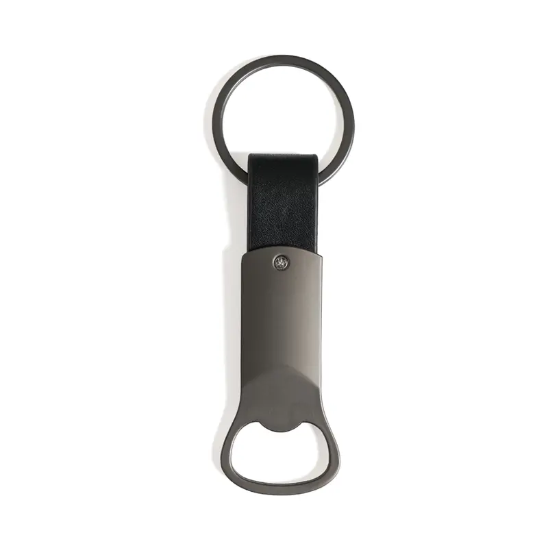 Llavero destapador compacto de aleación de zinc con detalles en PU y anillo de hierro, fabricado con materiales resistentes y duraderos. Cuenta con un diseño ergonómico y elegante en color negro, con anillo para llaves incorporado y destapador funcional, lo que lo convierte en un accesorio práctico para el uso diario. Es ideal para quienes buscan una herramienta útil y estilizada para abrir botellas en reuniones, viajes o eventos al aire libre.