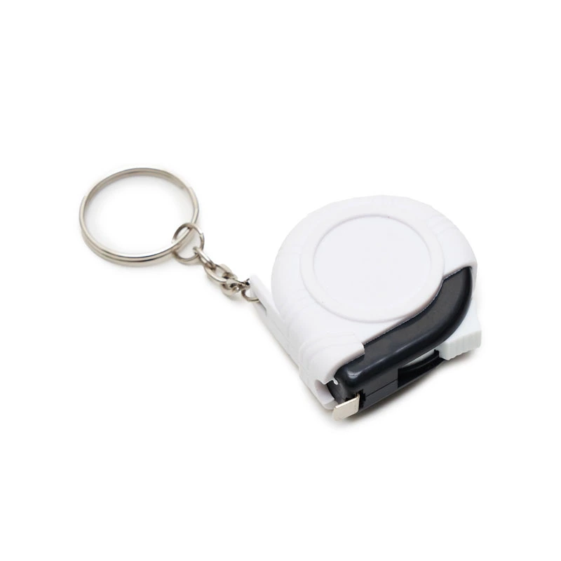 Cinta métrica retráctil con llavero fabricada en ABS y hierro. Cuenta con mecanismo retráctil de 1 metro, anillo metálico para llaves y cuerpo ergonómico. Es ideal para llevar siempre a mano en tareas de medición rápidas, reparaciones en el hogar, actividades de bricolaje o uso profesional diario.