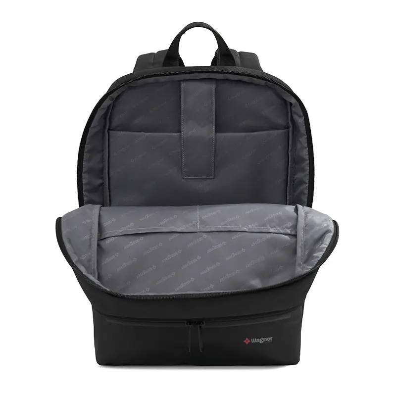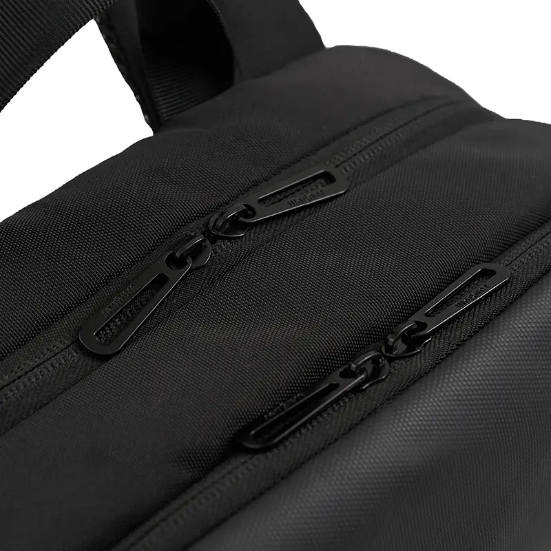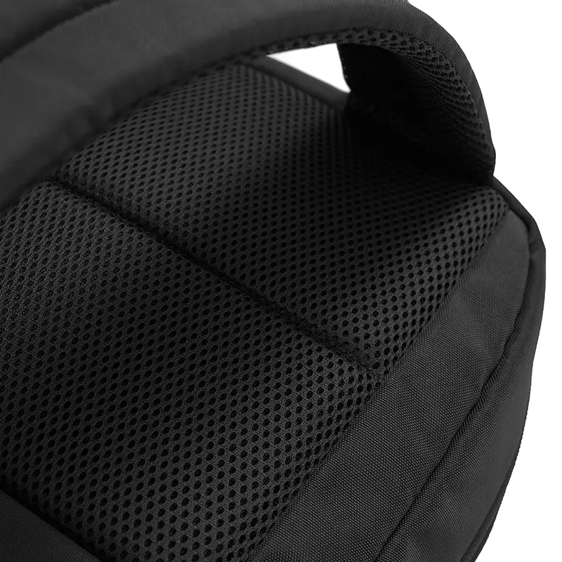 Cuenta con un compartimiento principal amplio porta notebook 15´ y bolsillos internos. Posee dos bolsillo frontales, uno de ellos oculto, ideales para guardar objetos pequeños que necesites a mano, como las llaves, billetera o el celular. Además, tiene 2 bolsillos laterales porta botellas y uno trasero. Espalda y correas regulables acolchonadas.