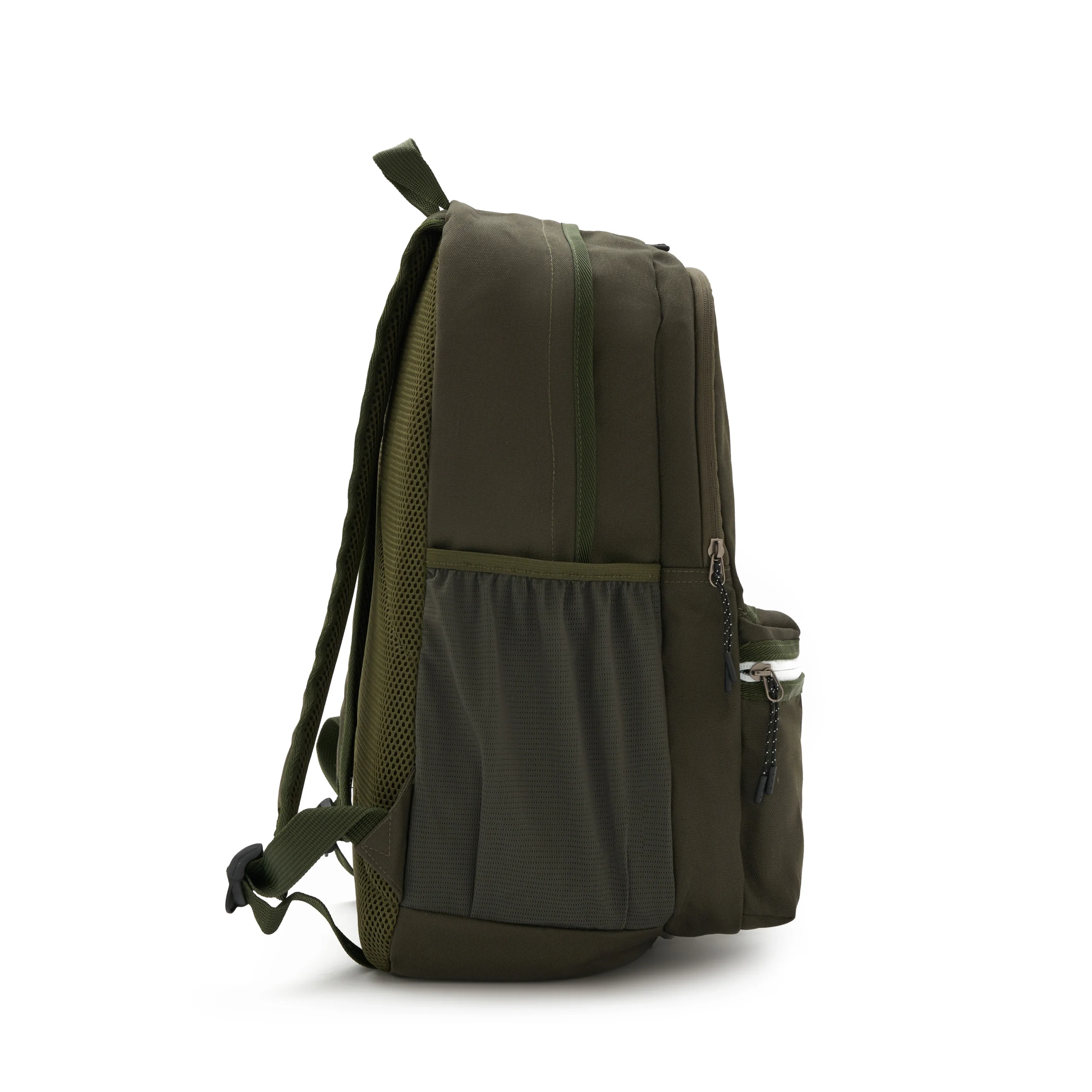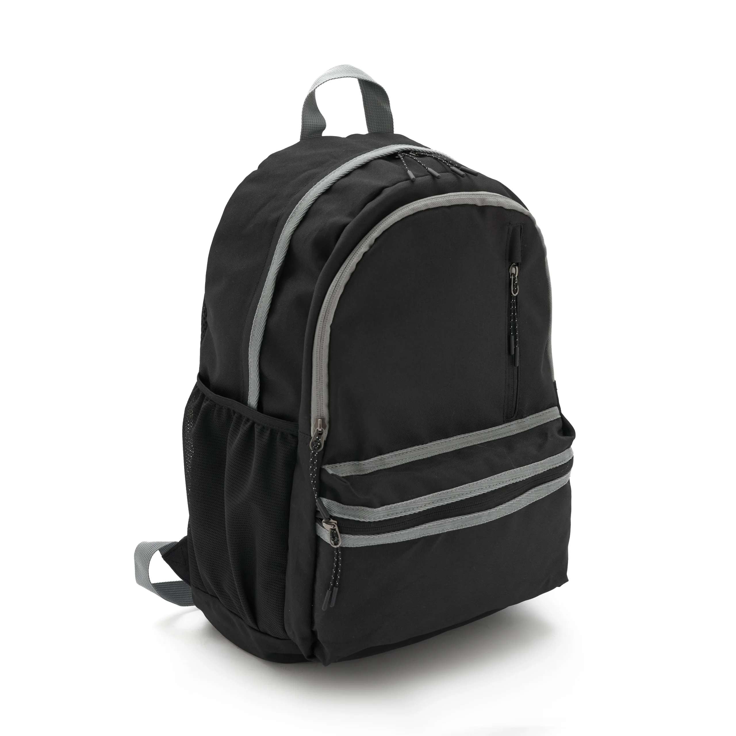 Mochila fabricada en poliéster 100% 600D, con forro completo. Cuenta con dos compartimentos principales, un bolsillo frontal con cierre vertical en la parte superior, y un bolsillo horizontal en la parte inferior. También tiene dos bolsillos laterales de malla, porta botellas. Capaz de llevar una notebook de hasta 15,6″. Ideal para quienes buscan una mochila con amplio espacio de almacenamiento y compartimentos organizadores, para llevar al trabajo y universidad.