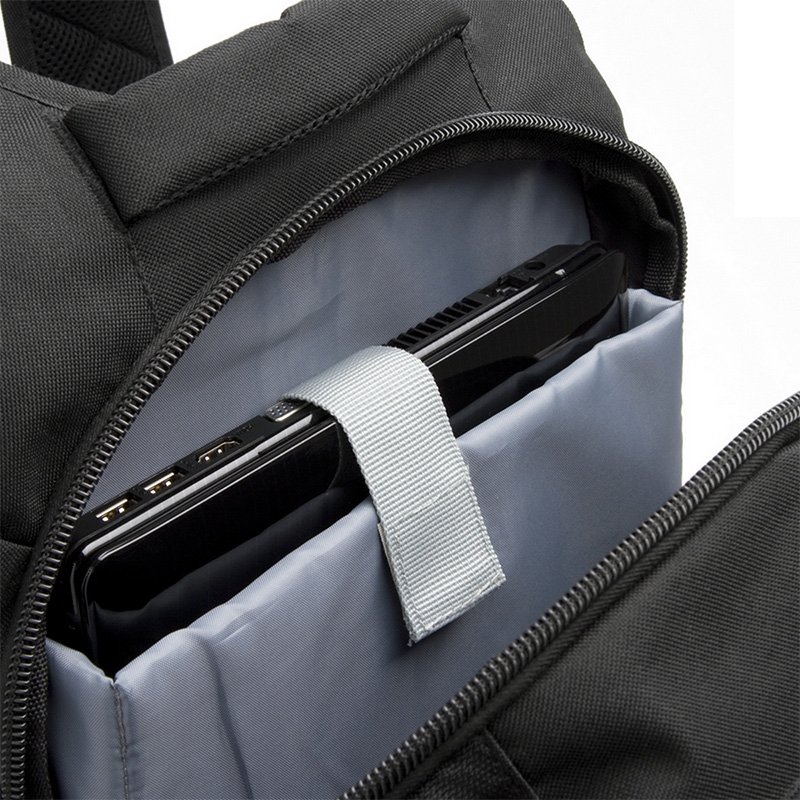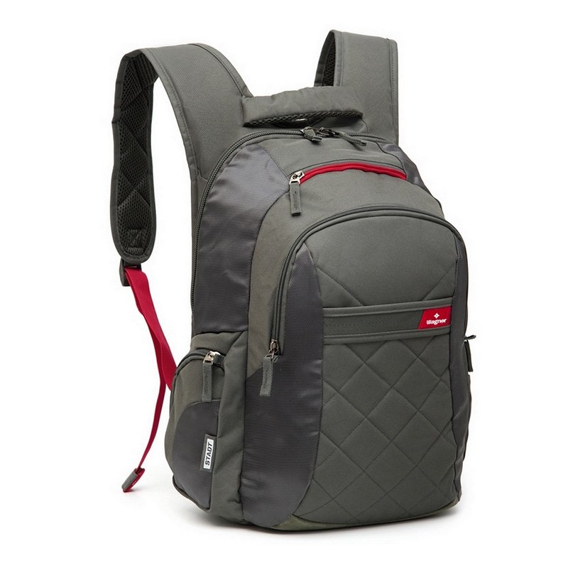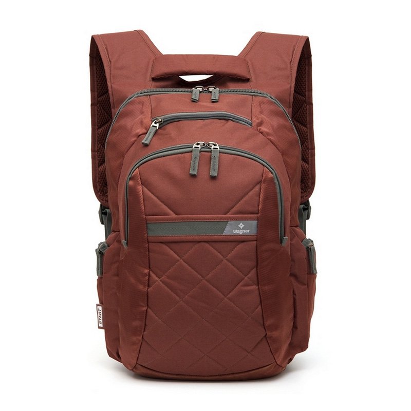 Mochila diseñada en 1680D Polyester combinada con Mini Ripstop con detalle en gamuza. Posee un compartimento principal integrado para notebook debidamente acolchado para mayor seguridad. El bolsillo frontal incluye un organizador para pequeños objetos. En la parte superior, contiene un bolsillo de fieltro resistente a rayaduras. Posee 2 bolsillos laterales con cremallera. Correas para hombro acolchonadas. Medidas: 47 x 30 x 20 cm. Capacidad: 29 Lts. Notebook: 15,6`. Wagner.