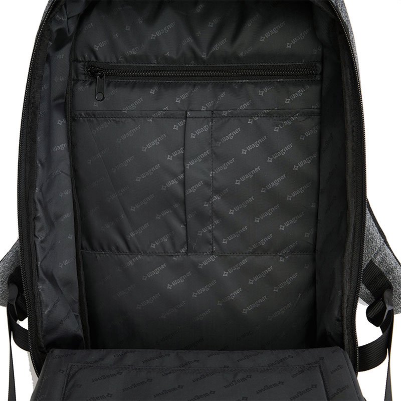 Mochila realizada en Poliester, con respaldo y correas acolchadas. El bolsillo principal con cierre es de apertura de 180°, tiene un espacio completamente acolchado para notebook y 4 bolsillos internos. Además, cuenta con un bolsillo con cierre oculto en el respaldo para proteger objetos valiosos y dos elásticos laterales. Incluye cinta para ser transportada junto con valija carry on. Dimensiones: 29 x 10.5 x 43.5cm,. Capacidad: 13L. Notebook: 15,6″. Wagner.