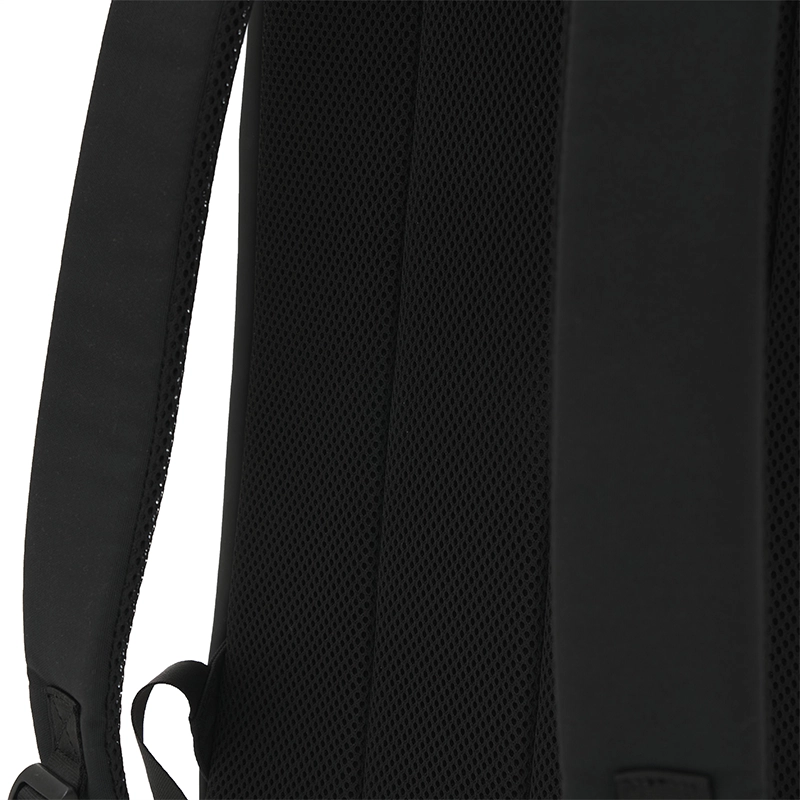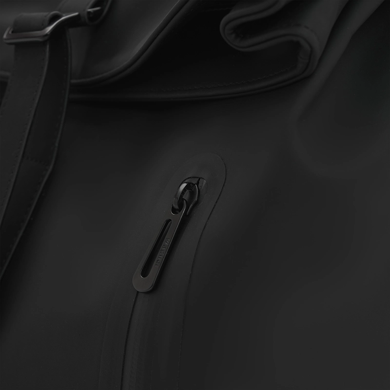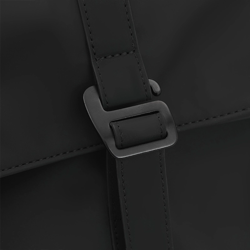 Mochila con cierre enrollable y acceso frontal confeccionada en PU. Cuenta con apertura superior con tira y hebilla metálica, bolsillo con cierre al frente, espalda acolchada y correas ajustables. En su interior cuenta con un espacio para PC (15,6″) y dos bolsillos pequeños sin cierre. Incluye manija superior y diseño compacto.