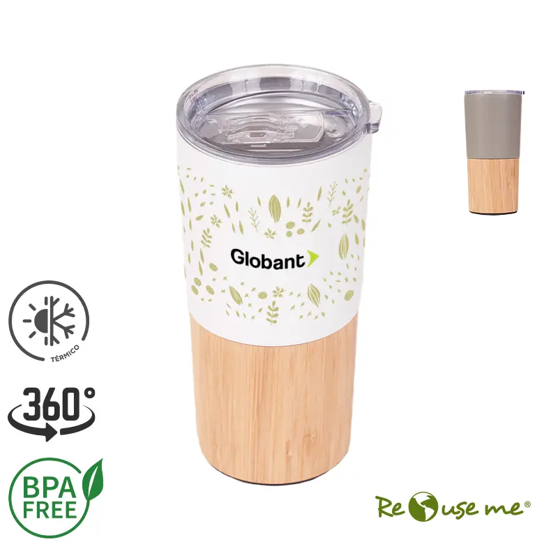 Mug de PP y Wheat Straw, pasta de tallo de trigo, un material sustentable que reduce el consumo de plásticos vírgenes, de 400ml. Cuenta con orificio en el mango para colocar la cucharita.