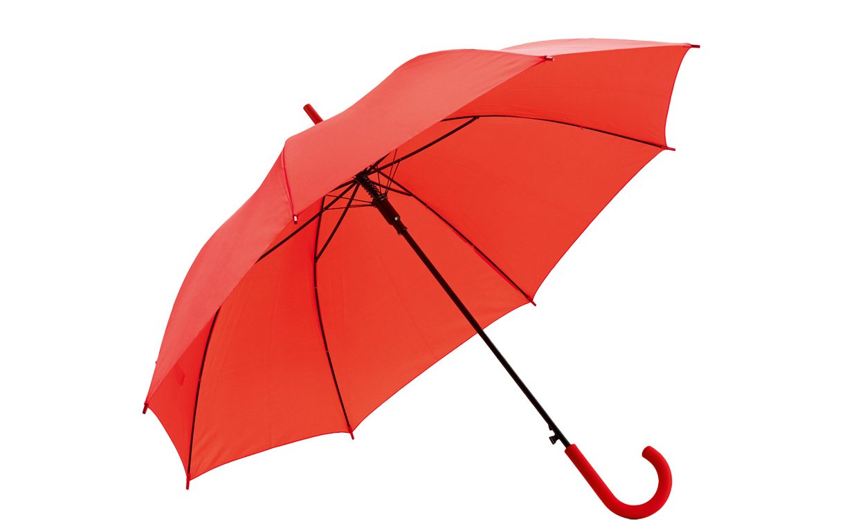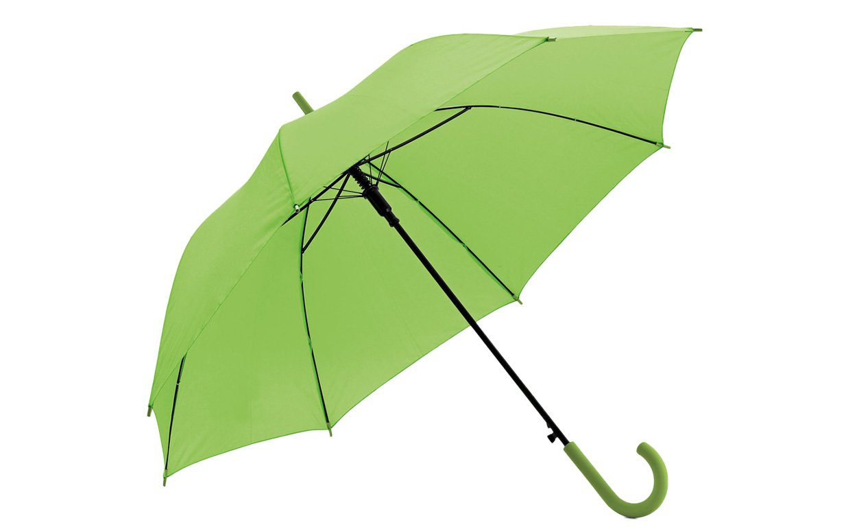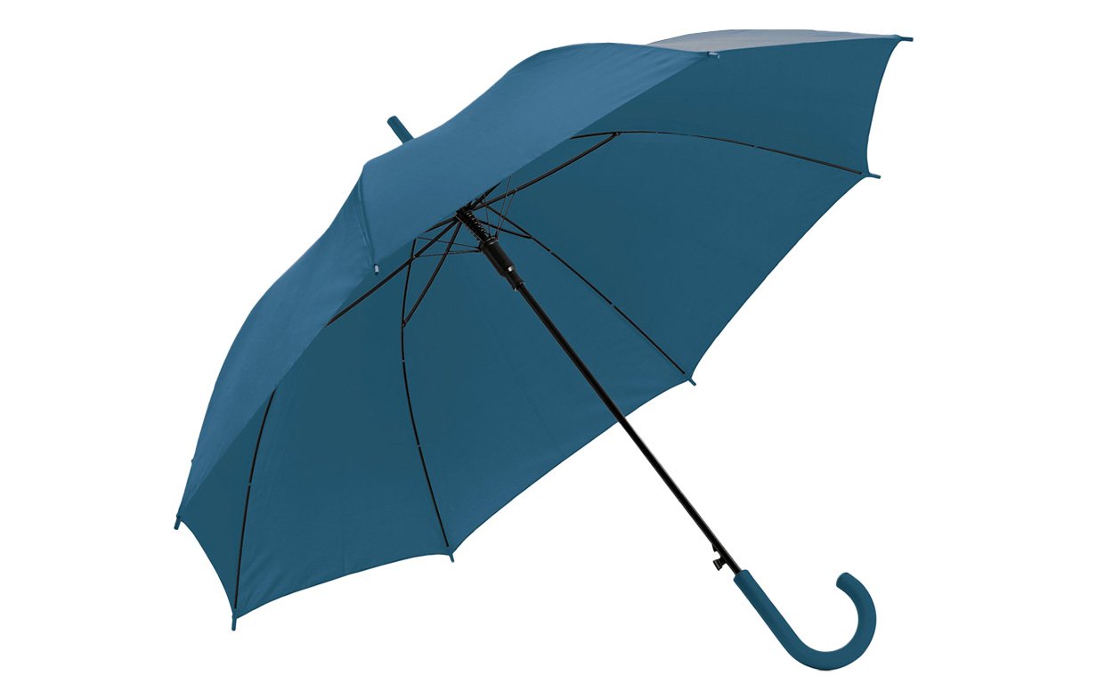 Paraguas de 8 gajos con mango curvo de goma y estructura metálica. Con mecanismo de apertura automática. Material: Poliéster 190T.