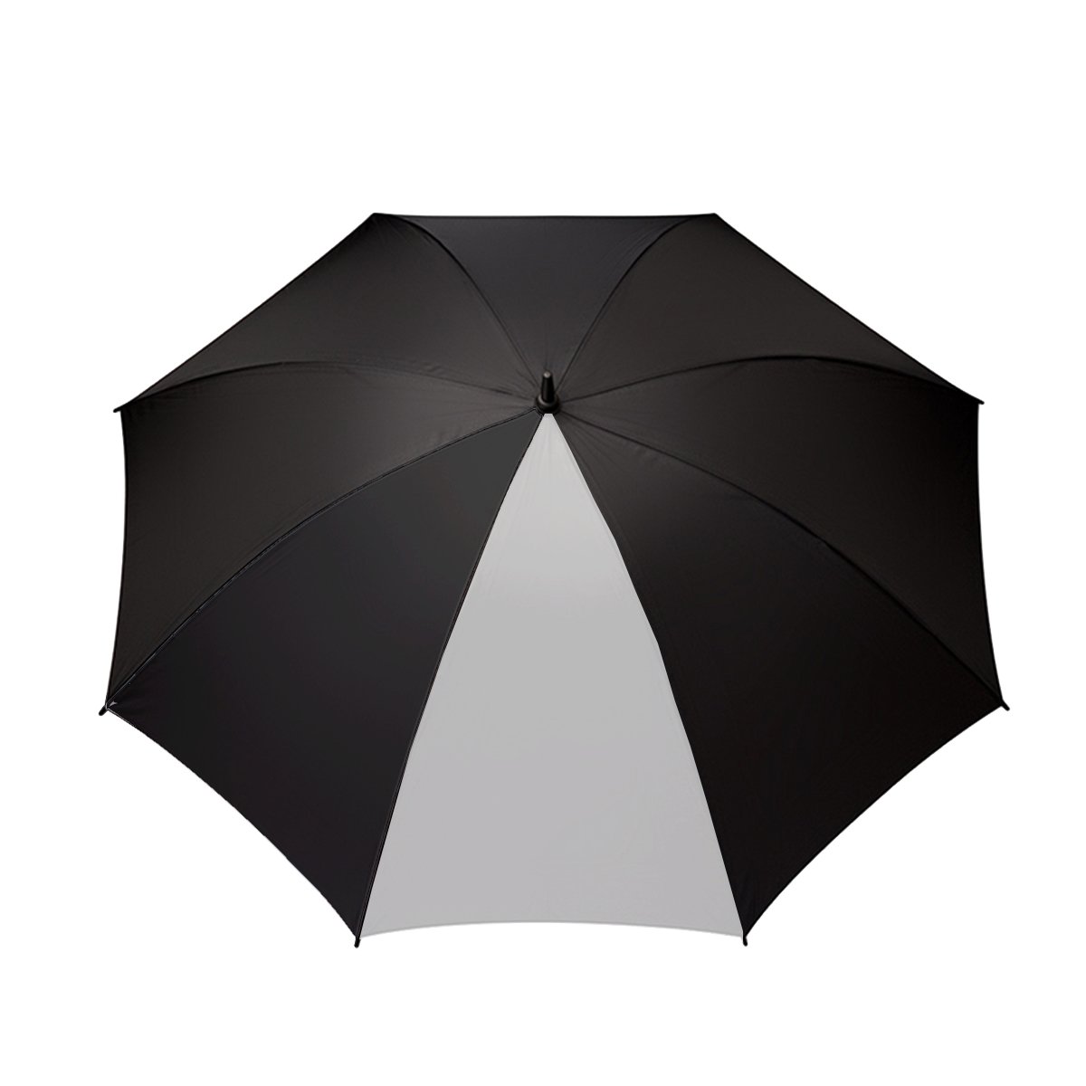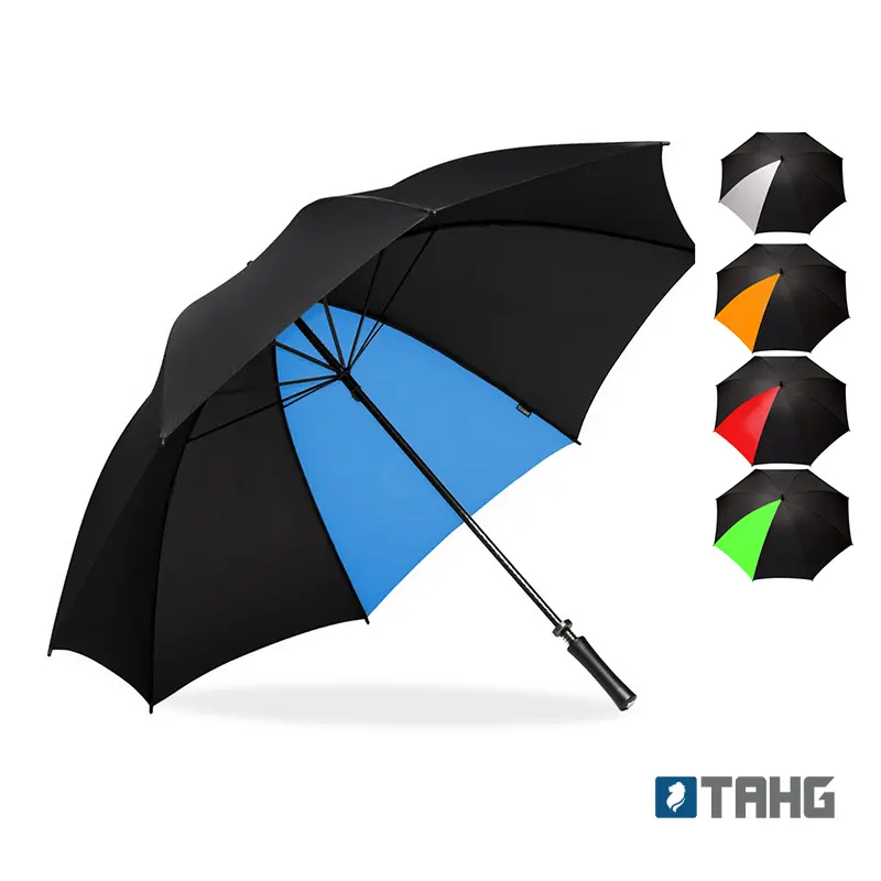 Paraguas ultra liviano de 8 paneles elaborado en fibra de vidrio con sistema WIND PROOF para evitar que fuertes vientos lo rompan. 7 gajos negros y 1 en color. Material: Pongee 190T. Medidas: 96 cm x diámetro 130 cm. Tahg.