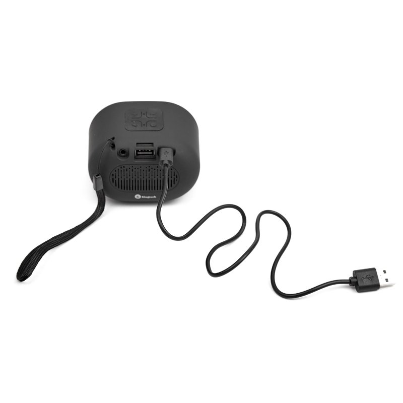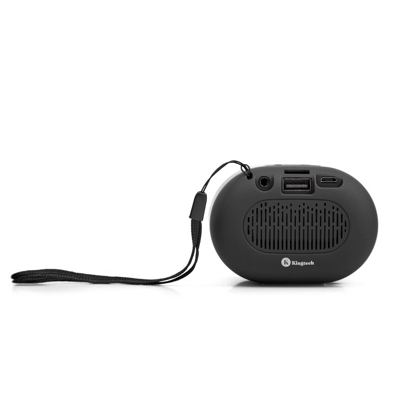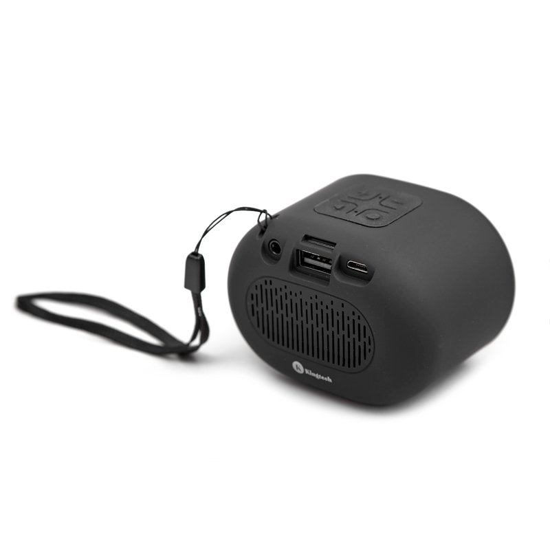 Parlante portátil con tecnología Bluetooth v5.0, micrófono manos libres y modo radio FM. Realizado en combinación de ABS y malla de acero. Incluye ranura para lectura de tarjetas de memoria micro SD, y posibilidad de conexión mediante cable auxiliar de 3,5mm | Batería de 300mAh | Potencia del parlante: 3w | Frecuencia:20Hz-20KHz | Alcance: 10 metros | Peso: 160g | Medidas 80 x 80 x 60mm | Kingtech