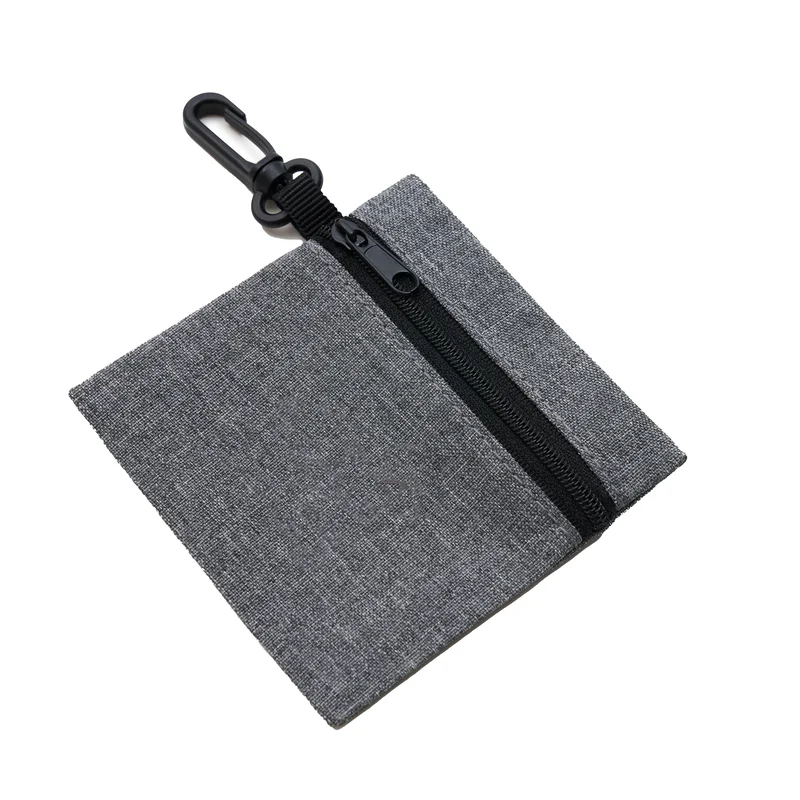 Porta objetos fabricado en poliéster 300D bicolor. Cuenta con cierre y gancho plástico. Es ideal para llevar pequeños accesorios o efectivo.