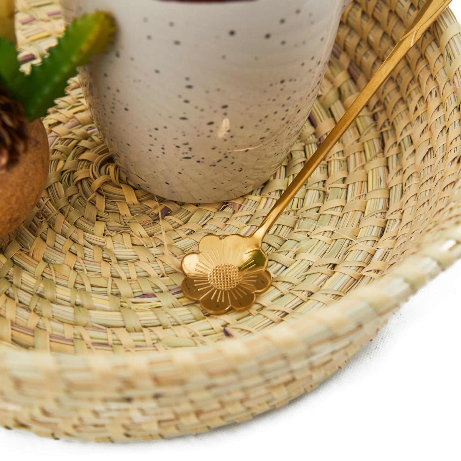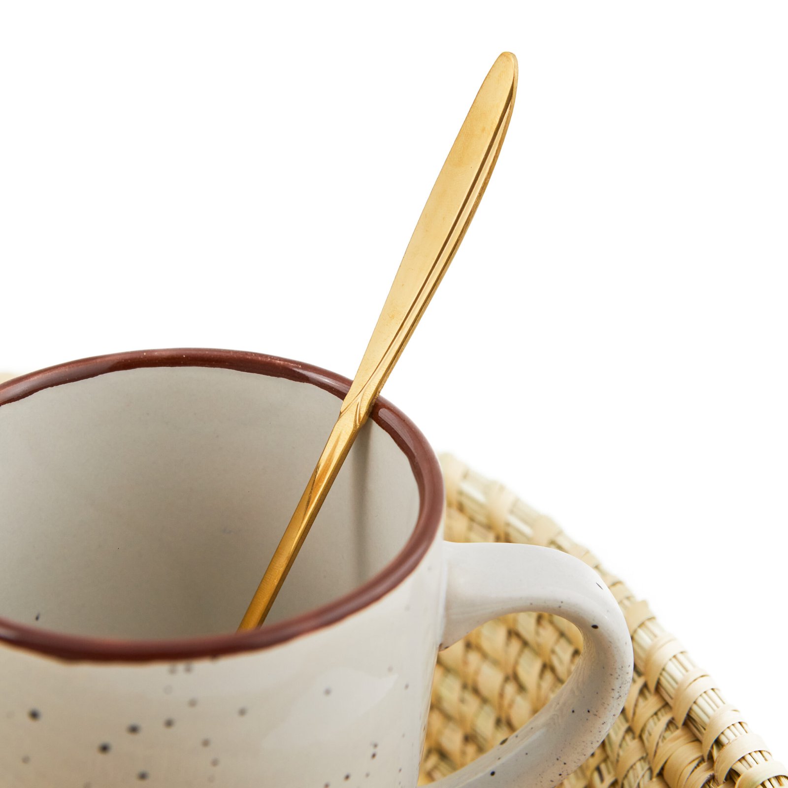 Cuchara dorada con detalle de flor.
