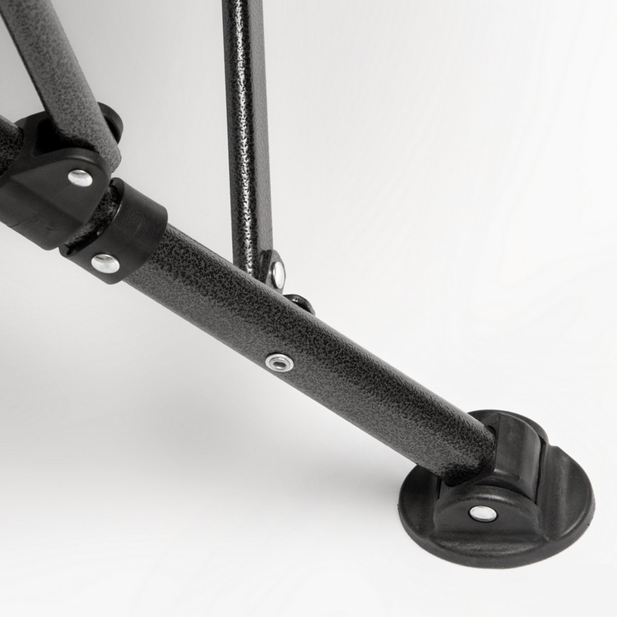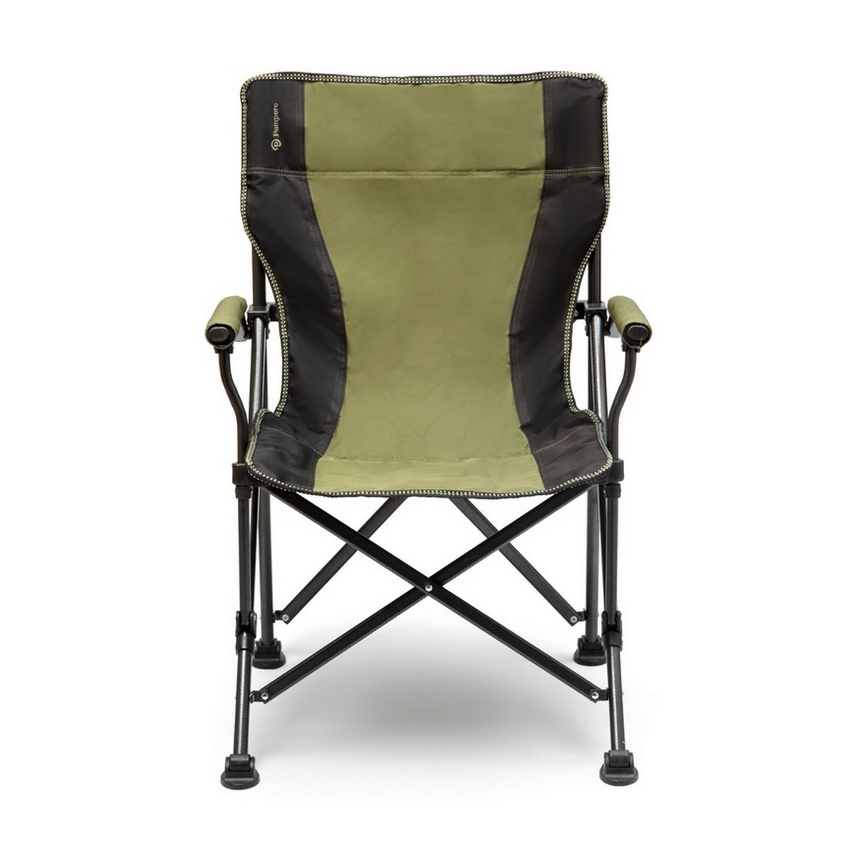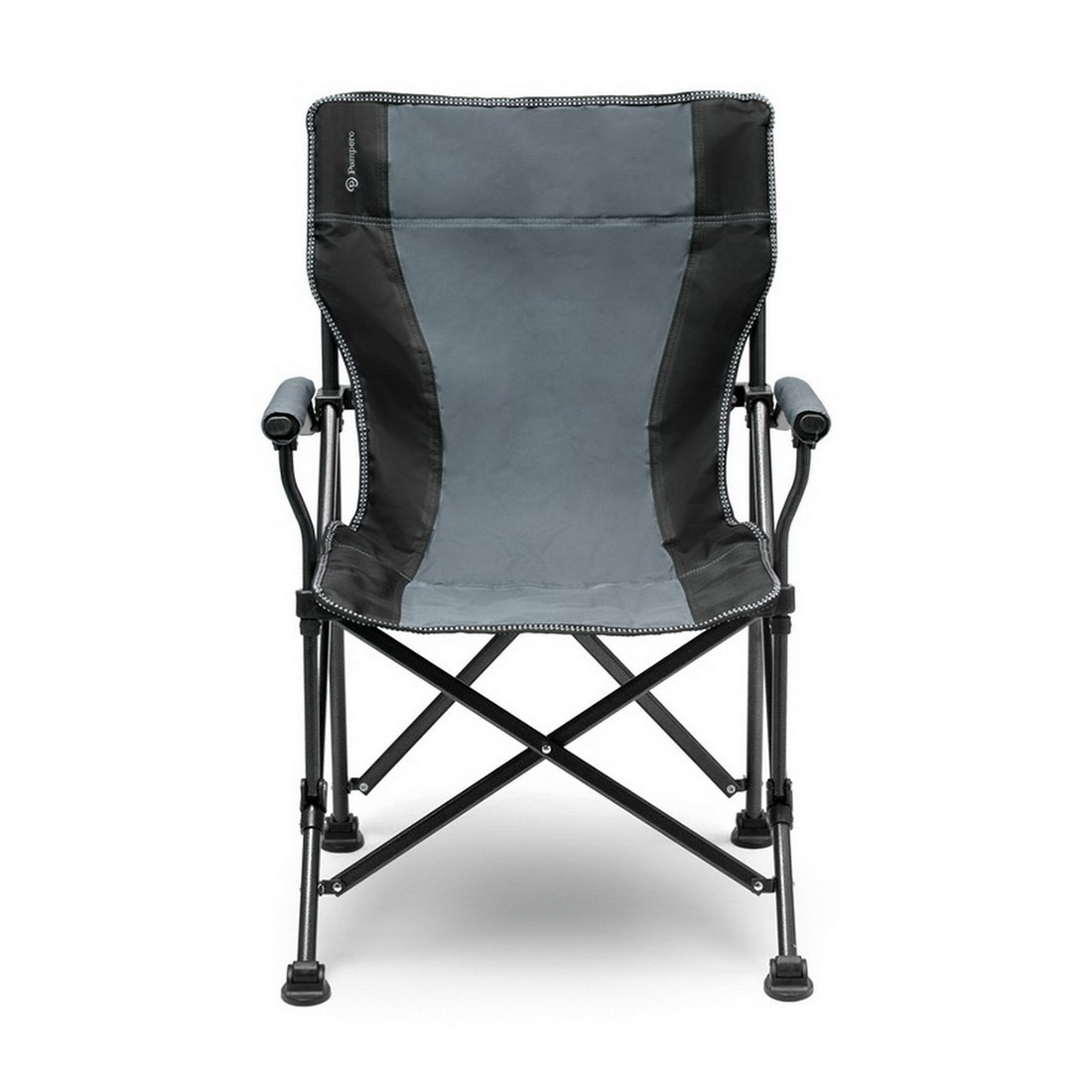 Silla plegable con Estructura reforzada con terminación epoxi rugosa. Paneles con interior de foam garantizando comodidad. Apoyabrazos acolchados. Bases adaptables a la superficie. Panel desmontable en el respaldo para logueo. Medidas: Ancho: 59cm, Profundidad: 55cm, Altura respaldo: 89cm. Pampero