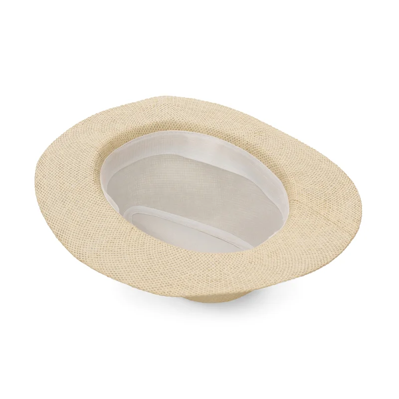 Sombrero unisex fabricado en 100% en fibras de papel, un material ligero, cómodo para acompañarte en cualquier ocasión. Cuenta con una cinta personalizable.