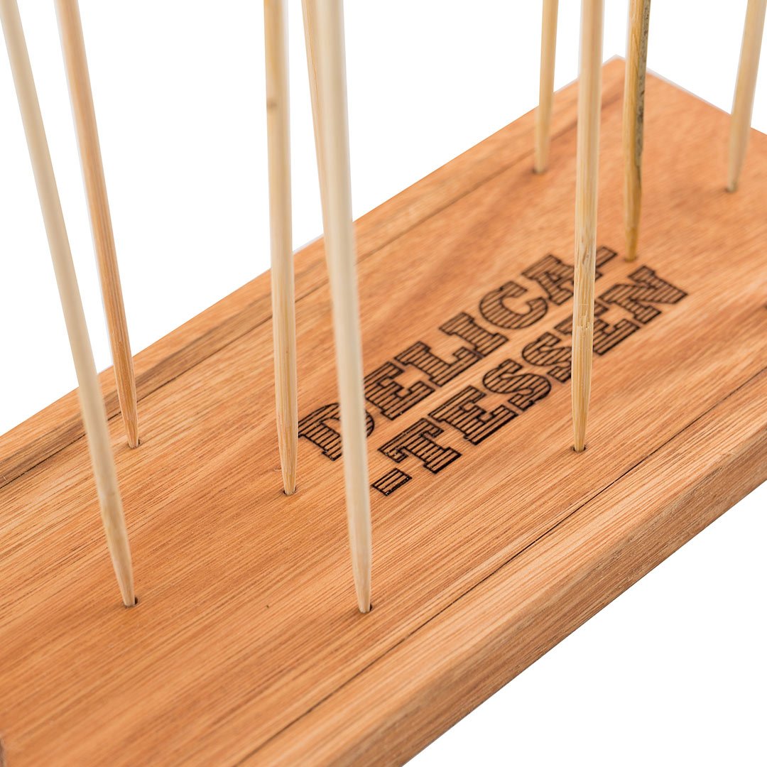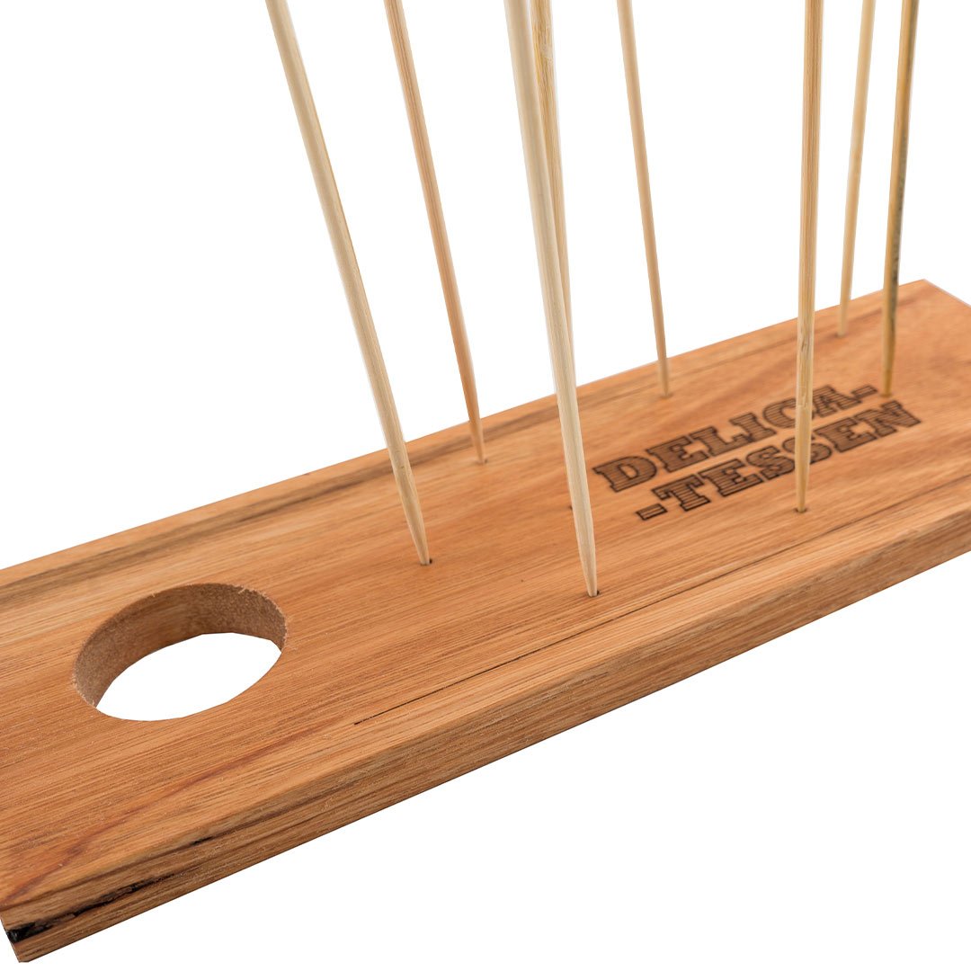 Tabla mini baguette de madera. 14 Pinches con detalle de madera en color.